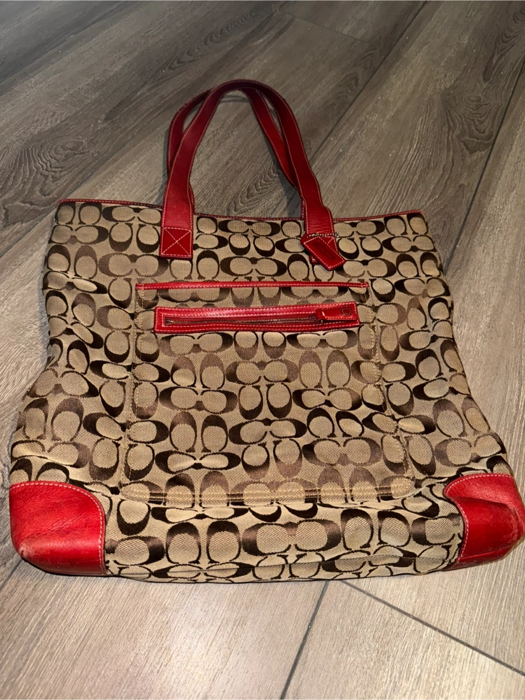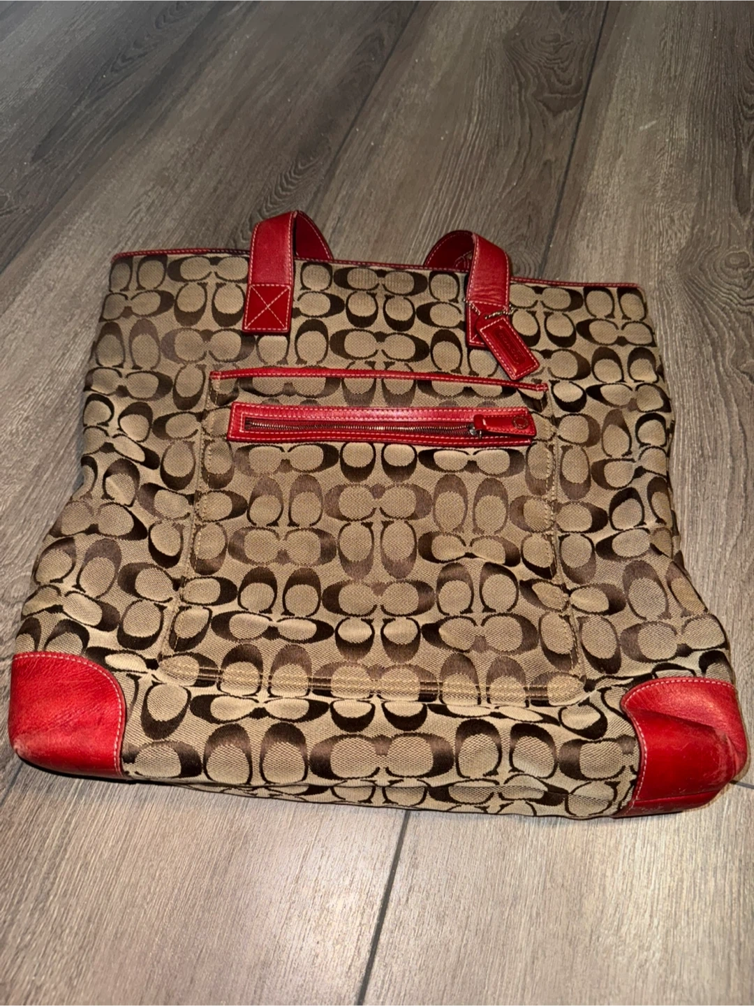 A Coach tote bag featuring the signature C monogram pattern. It's made with a combination of canvas and genuine leather trim. This bag's design is classic and functional. Never use this looking for a new home. In brand new condition!