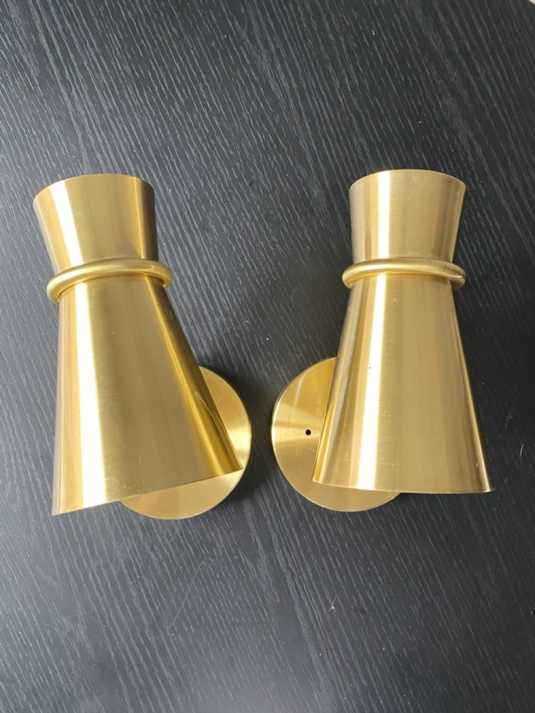 These wall sconces are finished in a brushed brass. They'd be great for adding accent lighting to a bedroom or living area.