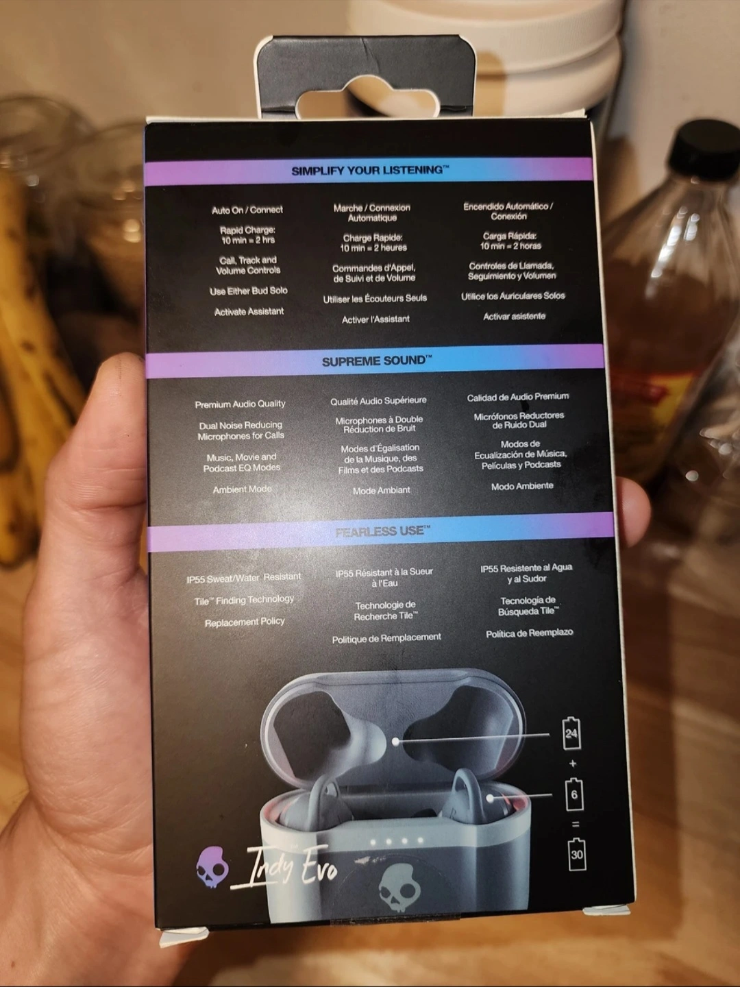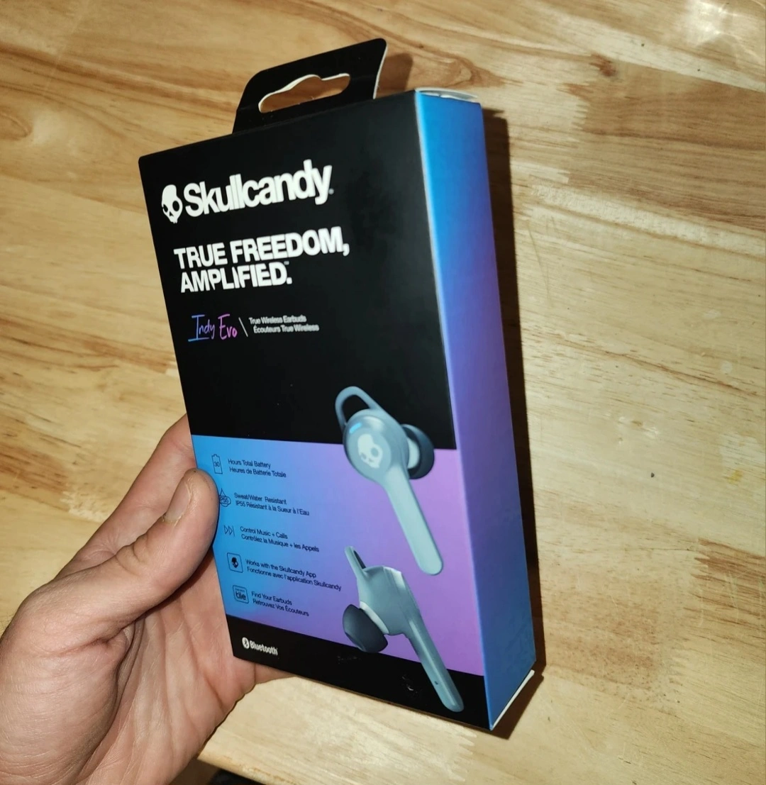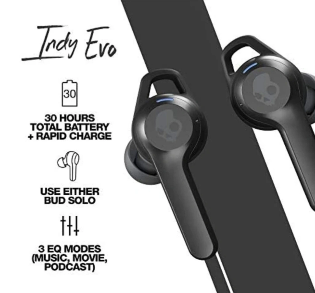 Skullcandy Indy Evo True wireless in-ear bluetooth earbuds compatible with iPhone and android, charging case and microphone, great for gym, sports and gaming, IP55 water dust resistant, black color, they are new, the box still never open, pick up only at Bloor and Ossington area.
