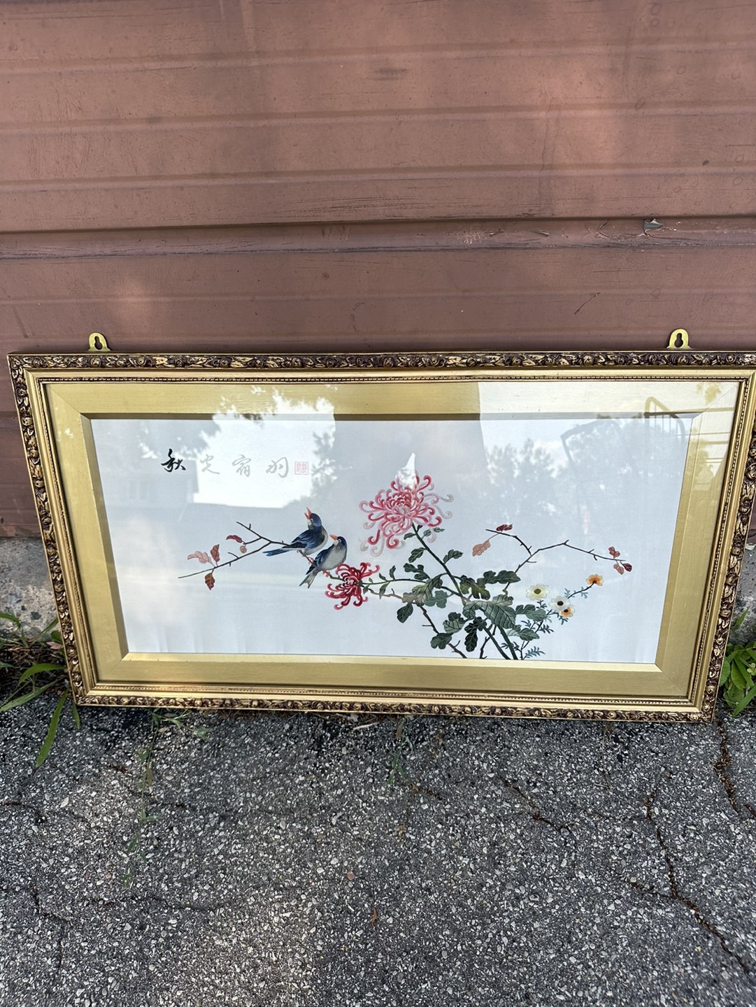 It’s a Chinese drawing with glass frame. 20 by 38 inch.