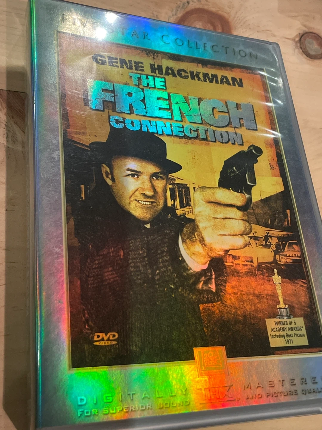 This 2-DVD set features the classic film 'The French Connection' starring Gene Hackman. It's a 'Five Star Collection' edition and includes bonus features like director's commentary and making-of documentaries.