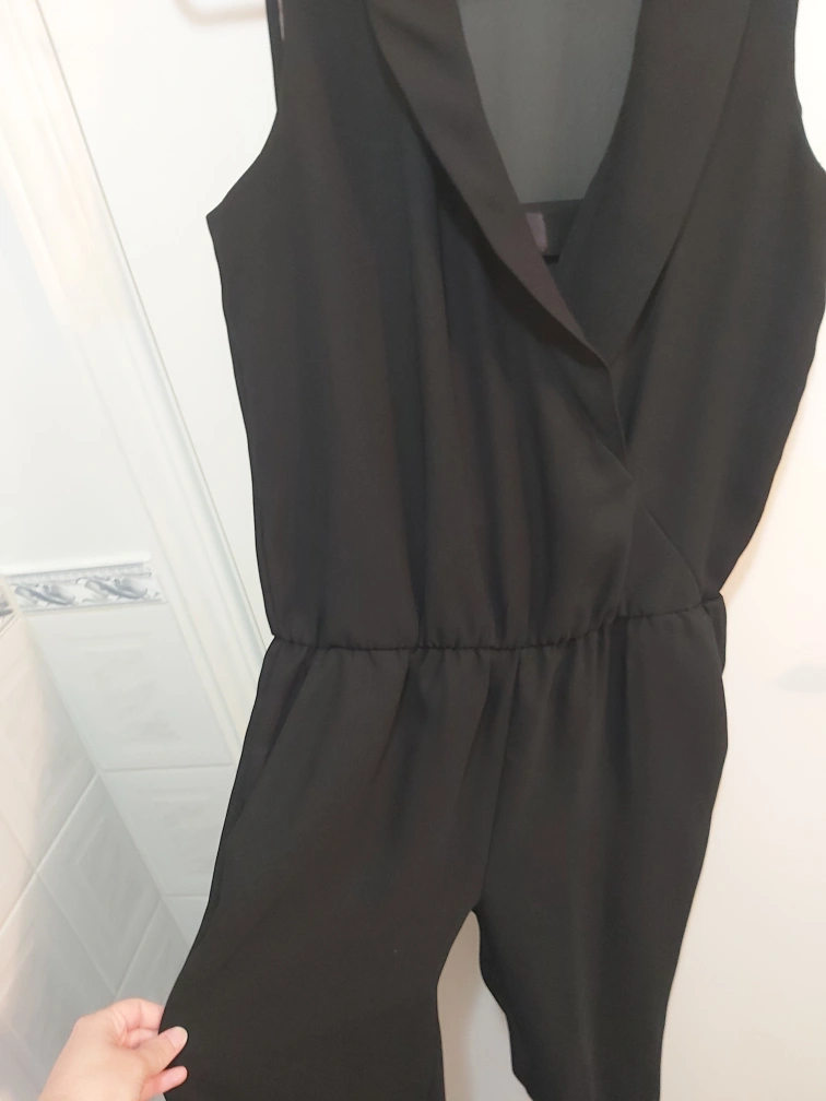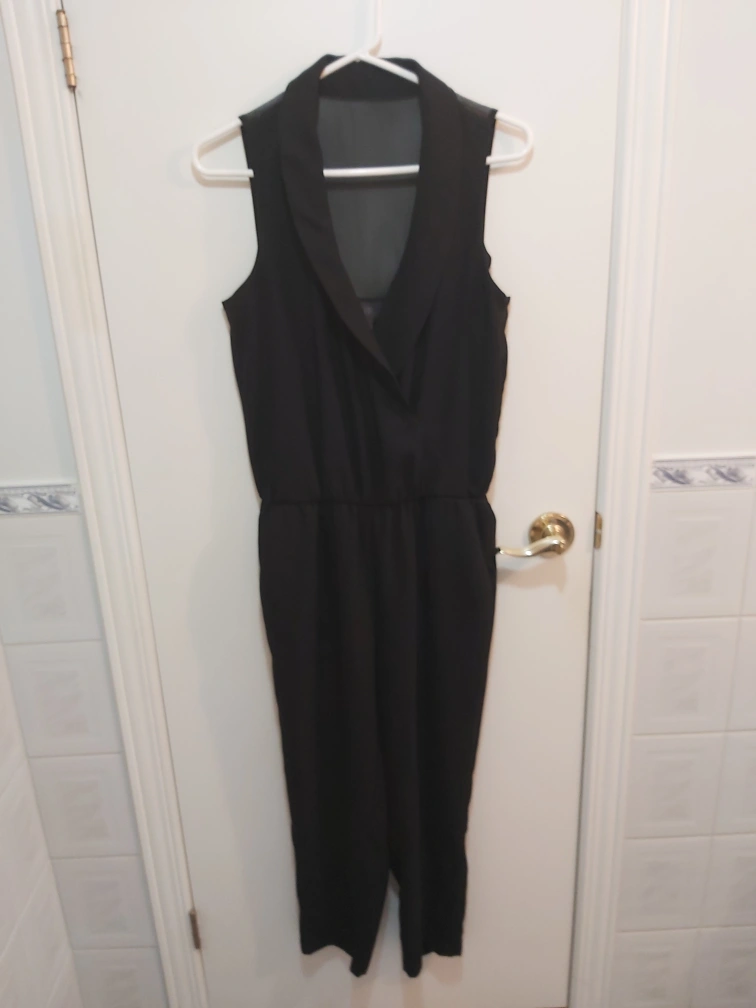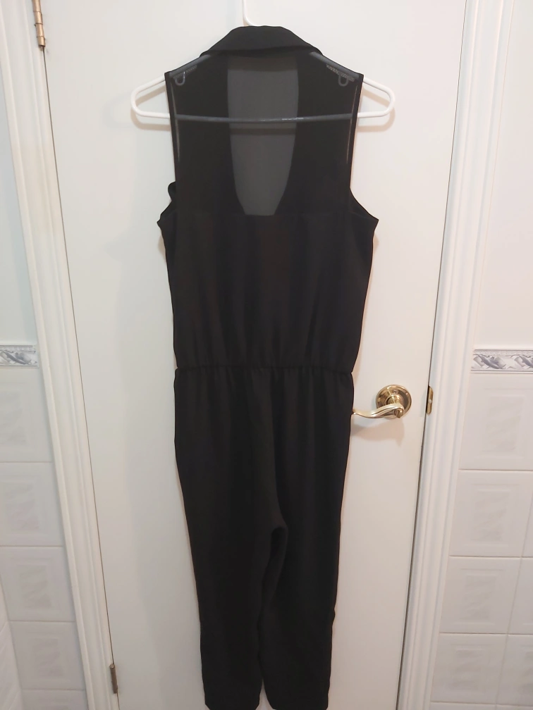 Type: Sleek jumpsuit with sheer on the back of the top