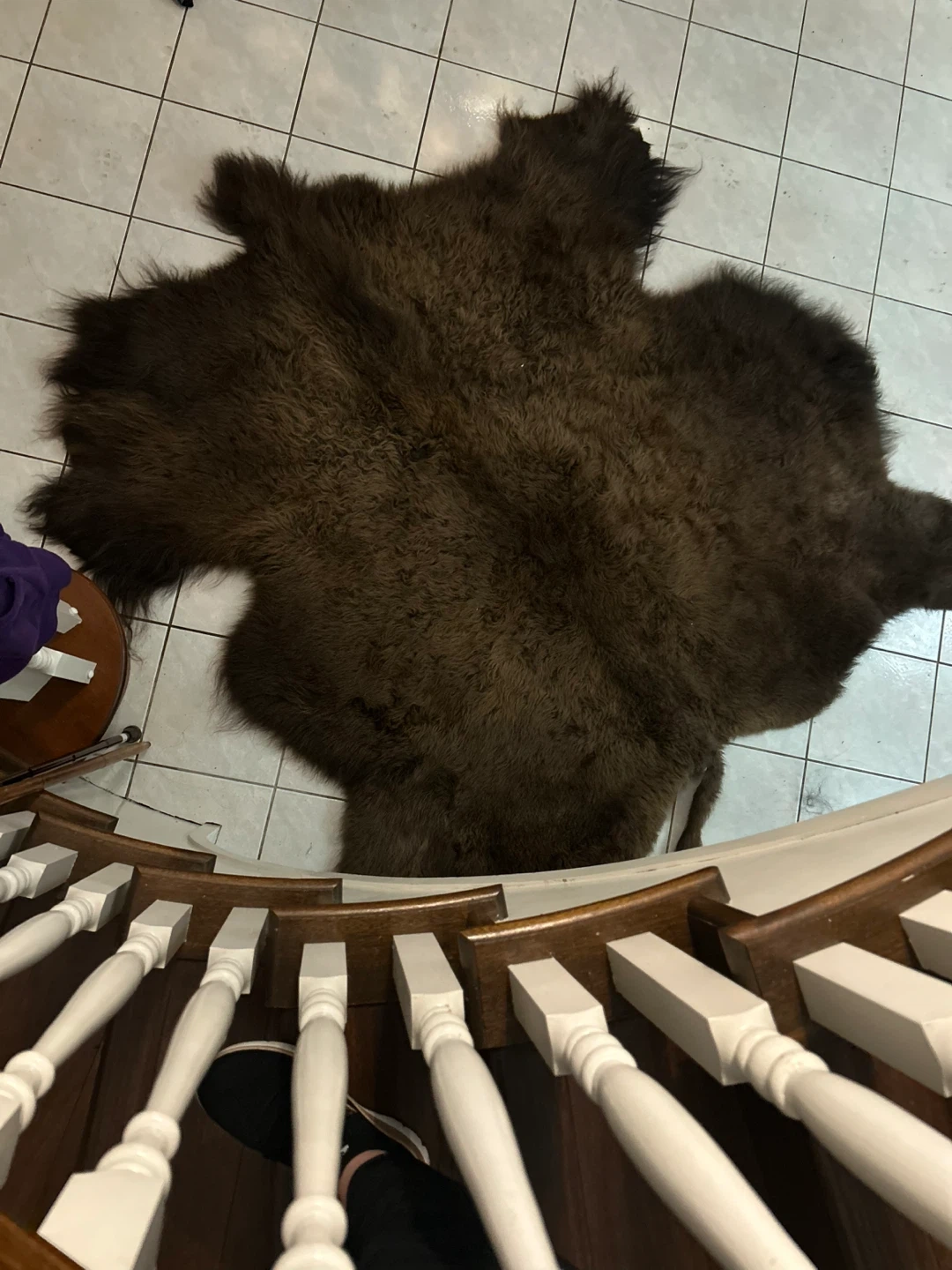 Authentic bison skull with impressive horns. It's a striking decorative piece for any space. Bone material, natural colour.