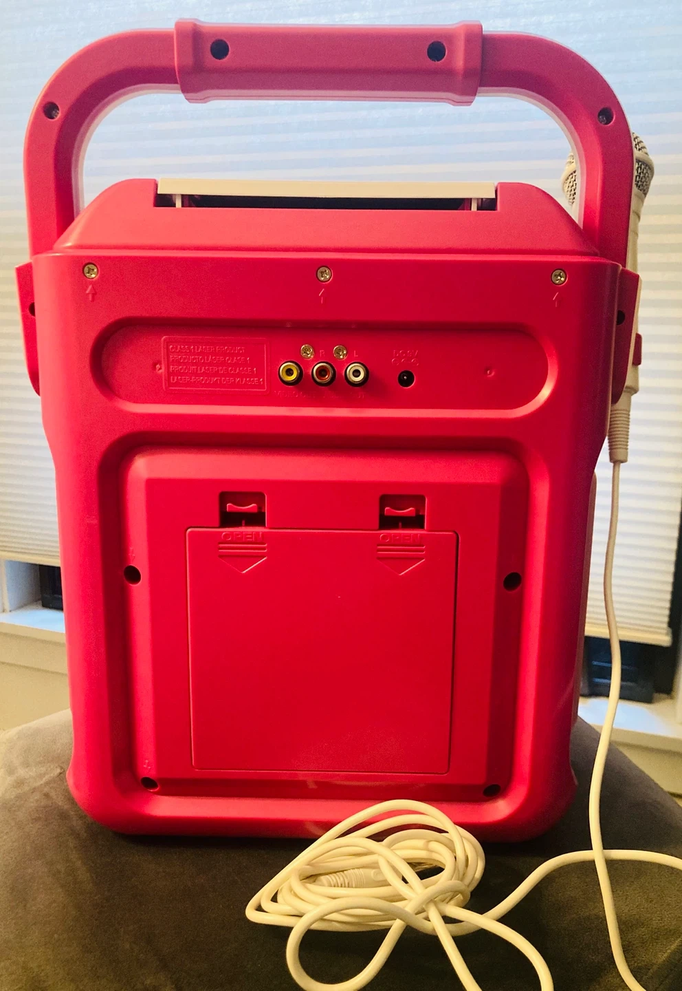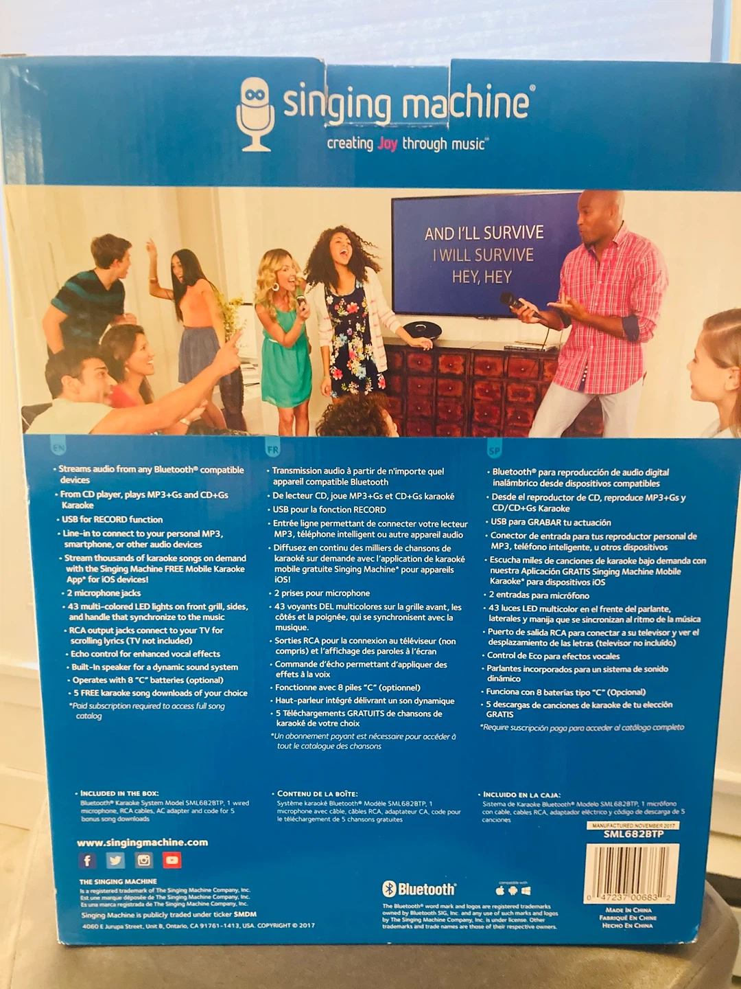 Singing Machine Groove Bluetooth karaoke system with one wired microphone. Streams audio from any Bluetooth-compatible device. Includes RCA output jacks to connect to your TV for lyrics. Built-in speaker for a dynamic sound experience.
