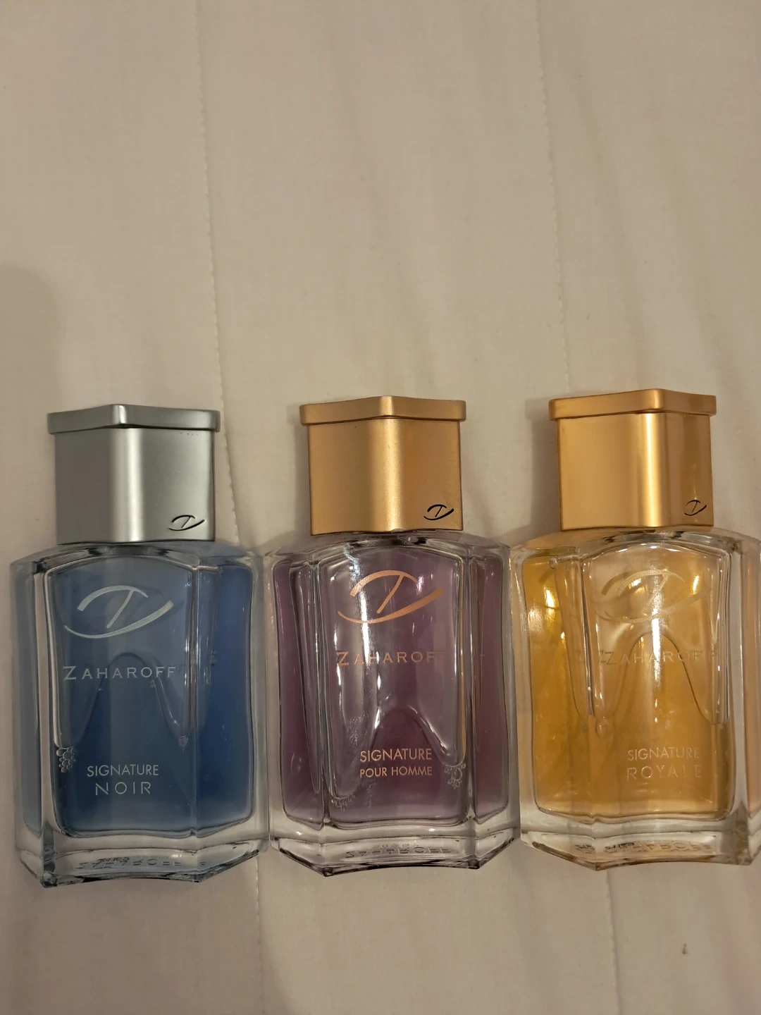 Three 60ml Zaharoff Signature fragrances: Noir, Pour Homme, and Royale. Each bottle sits at 95-98%. Retails for ~200+$/bottle.