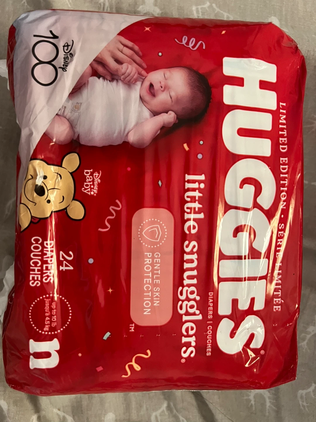 Huggies Little Snugglers diapers in size N. Package contains 24 diapers. Gentle skin protection for your baby. Designed for babies up to 10 lbs (4.5 kg).