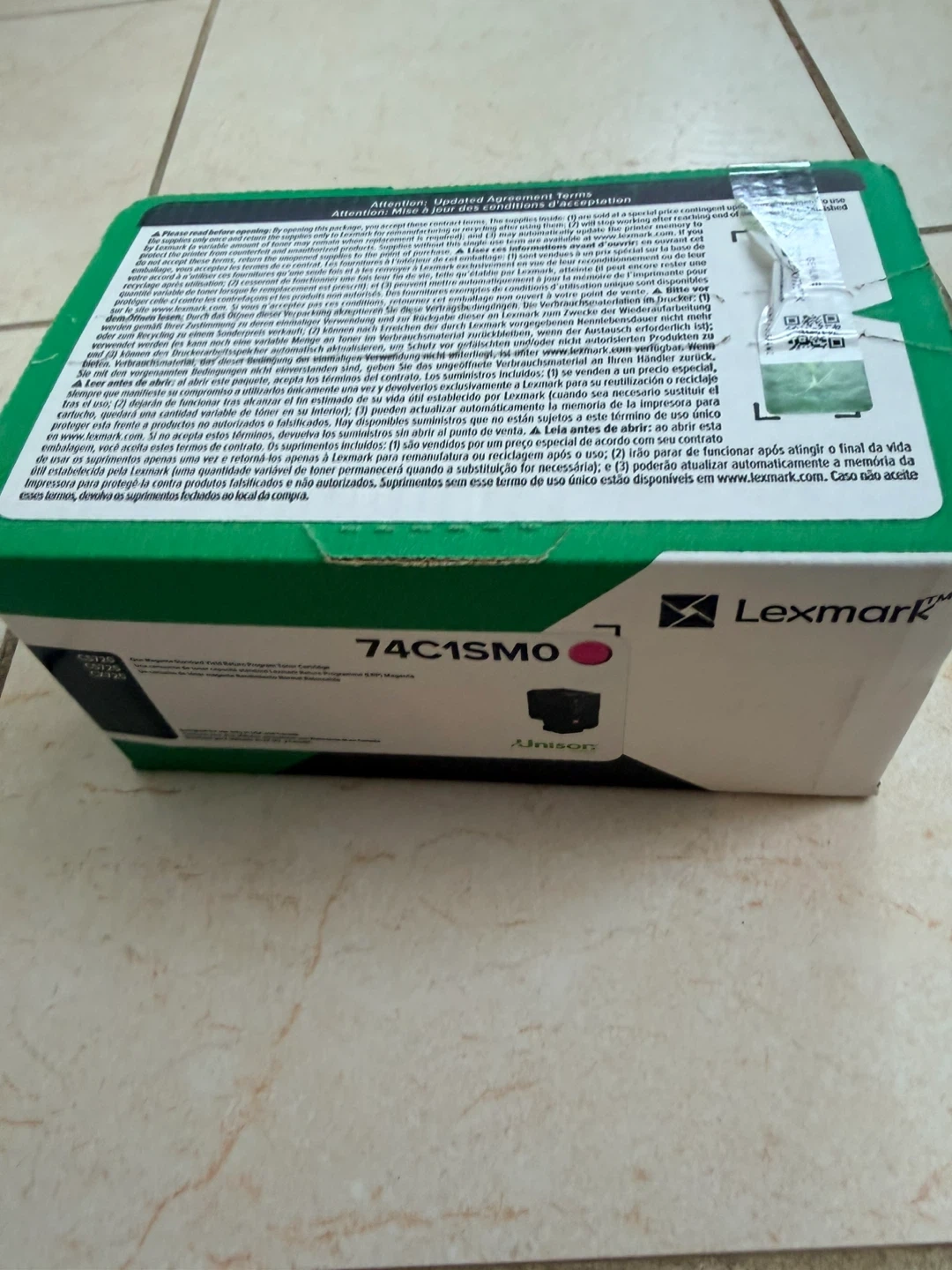 This is a new Lexmark 74C1SM0 standard yield magenta toner cartridge. It's for use with CS720, CS725, and CX725 printers. Toner cartridge, magenta standard yield.