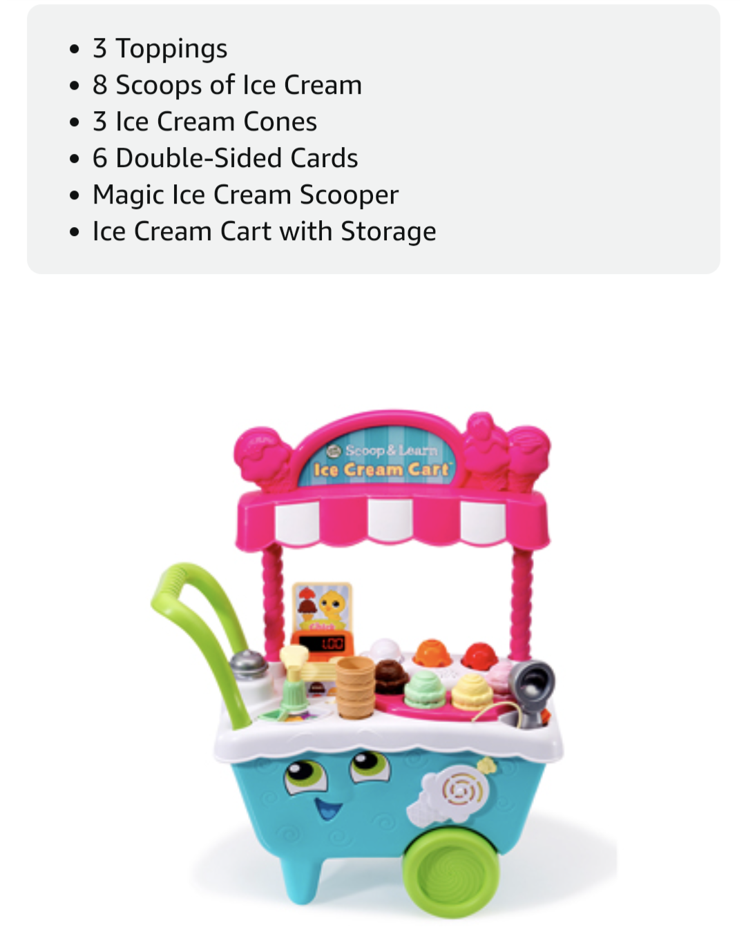 Like new condition LeapFrog Icecream cart. Super cute! All accessories included. Batteries not included. Retails for $57 Pickup location: Bayview & John (Markham/Thornhill)