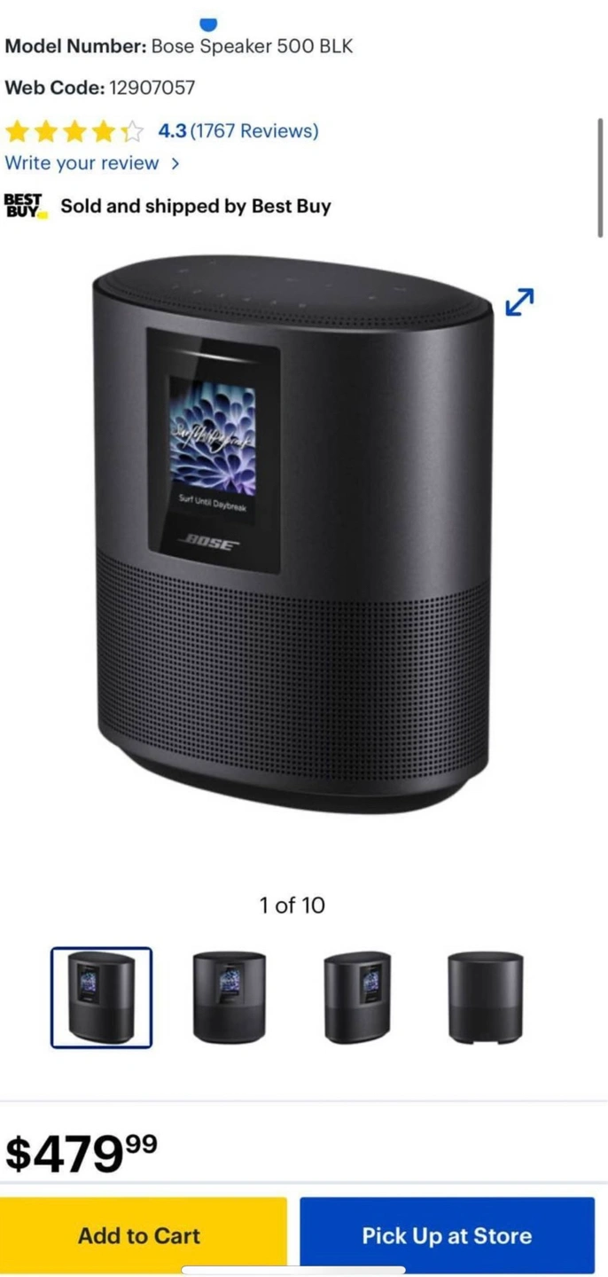 The Bose Home Speaker 500 delivers wall-to-wall stereo sound from a single speaker. Built-in voice control from Google Assistant and Amazon Alexa puts songs, playlists, and more at the tip of your tongue. And you have the freedom to control the music your way — with your voice, with a tap on the top controls, or with the app.
