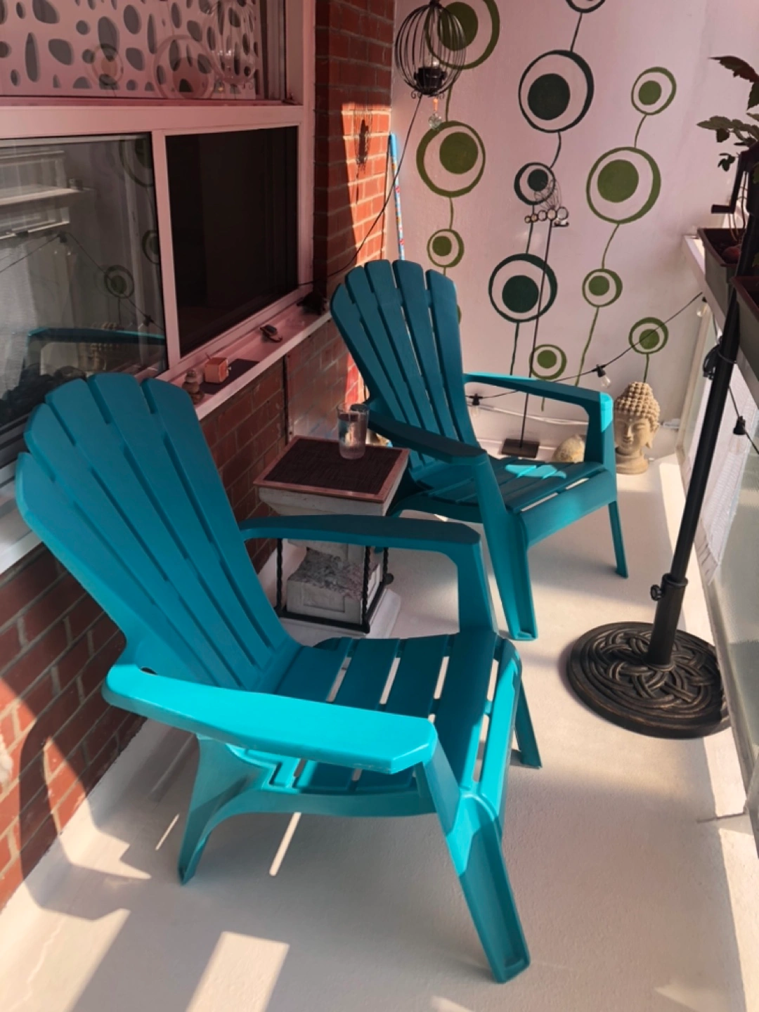 Two Funky turquoise chairs for sale perfectly fits 4.5 feet deep balcony fyi ๐๐ผ