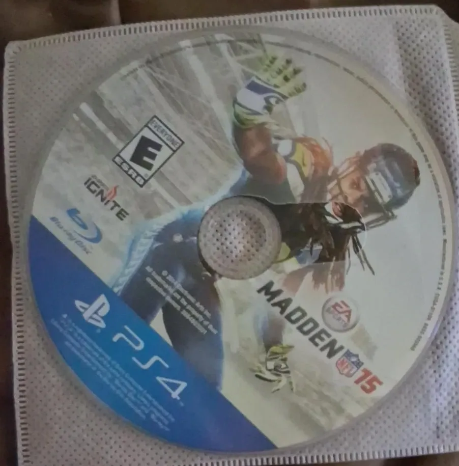 This is the Madden NFL 15 video game for PlayStation 4. It's a Blu-ray disc for PS4 consoles. Rated E for Everyone.