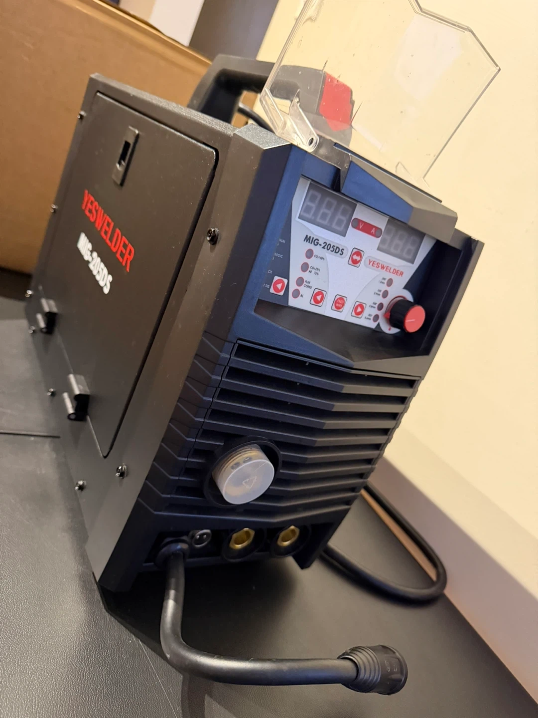 This is a YESWELDER MIG-205DS welder. It's a 205 amp MIG welder. Unit has a digital display for voltage and amperage settings.
