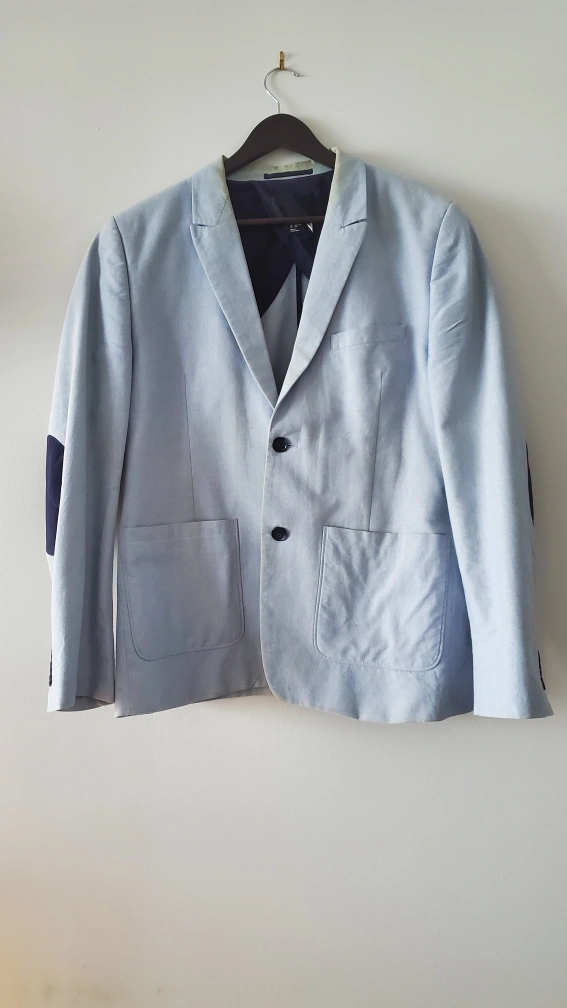 H&M casual jacket, size 44R (L). In great condition, all buttons and seams are perfectly intact. Can use some dry clean due to some yellow staining from regular wear.