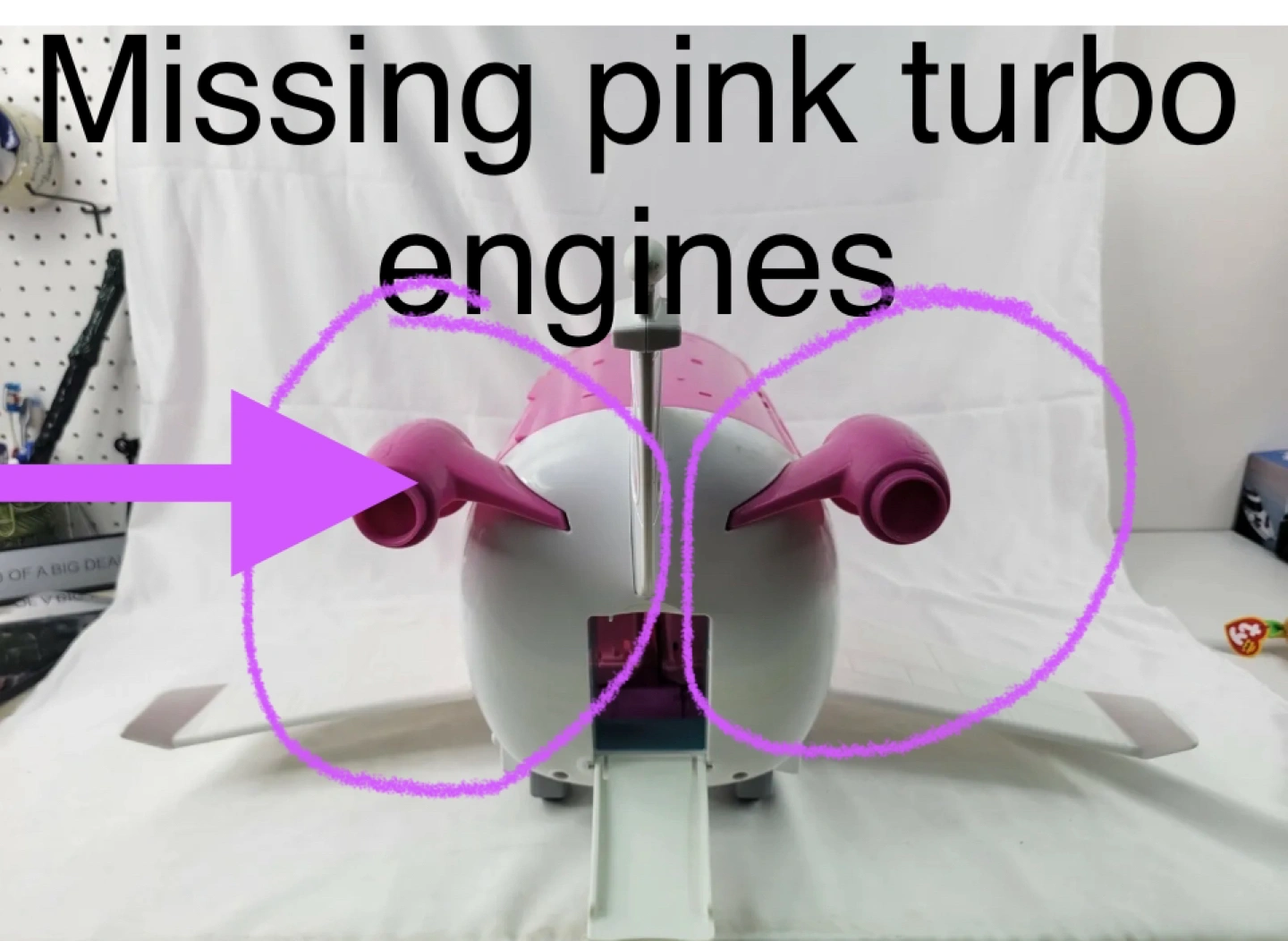 Intact except for the 2 pink turbo engines, as circled in photo.