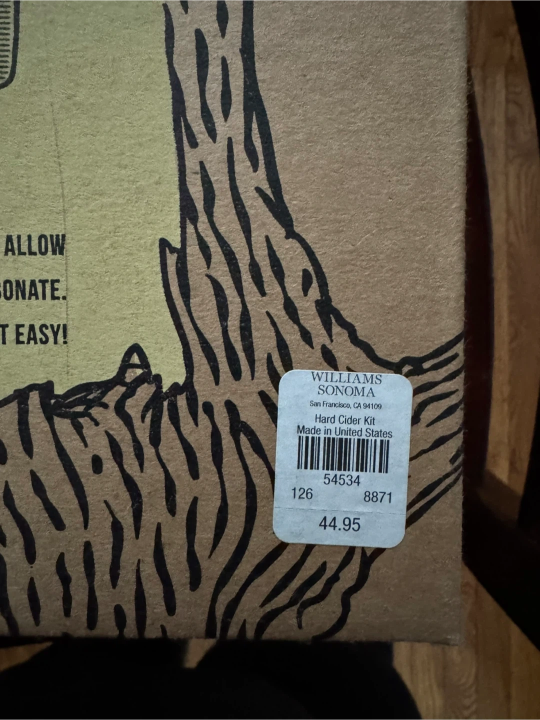 I'm selling a brand new Williams Sonoma Hard Cider Kit! This kit is perfect for making your own cider at home. It's still in the box, brand new and ready for you to start brewing. I bought this for $44.95.