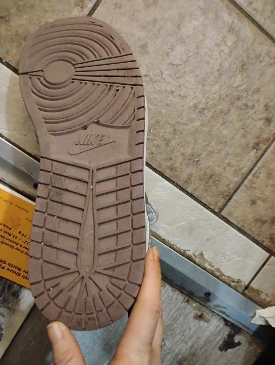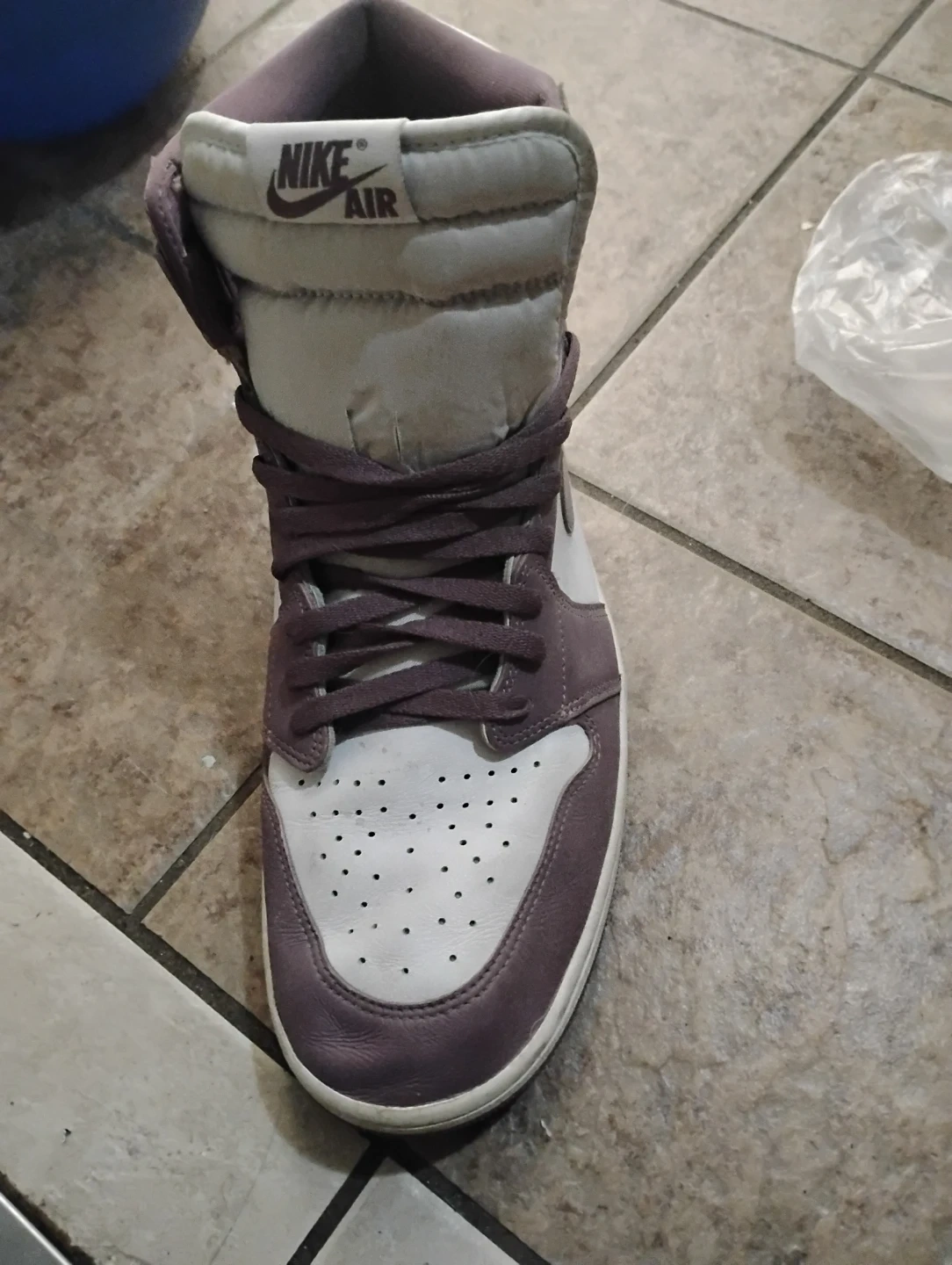 These Nike Air Jordan 1 High SE sneakers come in a mauve and white colourway. They're a classic high-top silhouette with a lace-up closure. This pair is great for casual wear or completing a streetwear look! Size 15, price may be negotiable for serious buyers