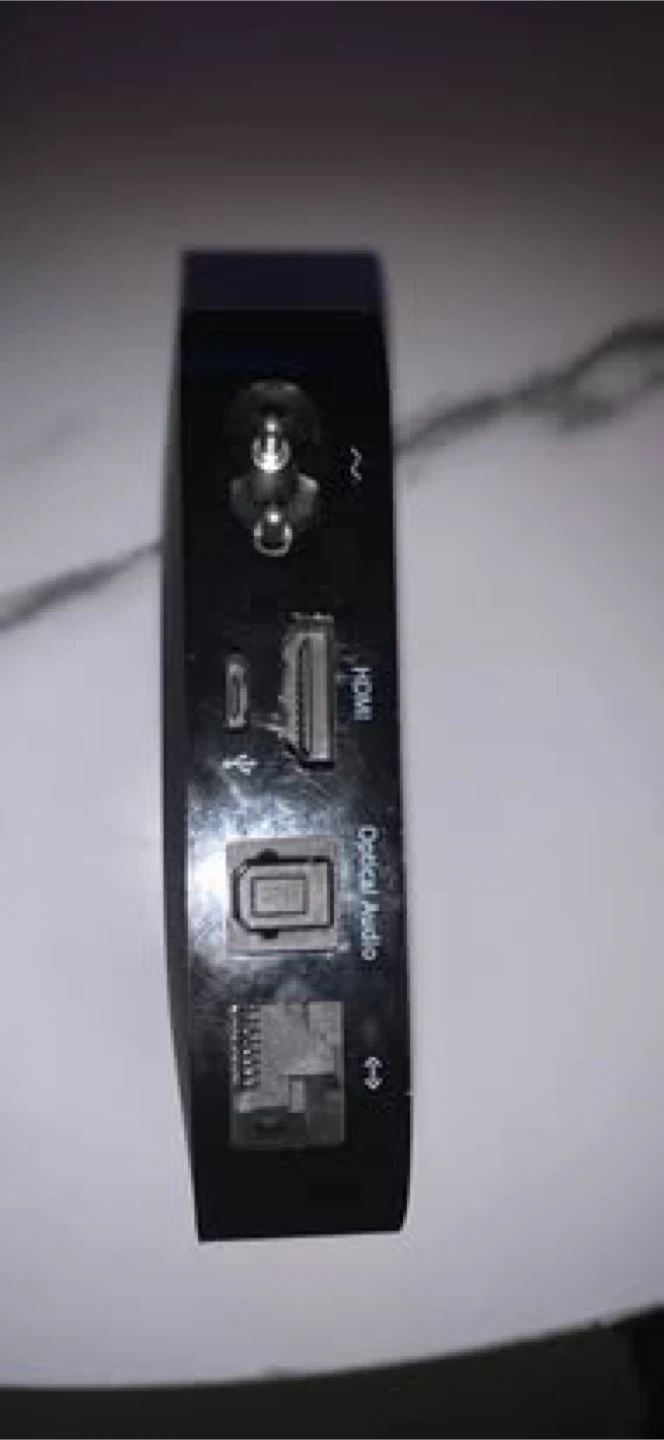 This is an Apple TV media streamer. It has HDMI, Optical Audio, and USB ports. Connect it to your TV for streaming content.