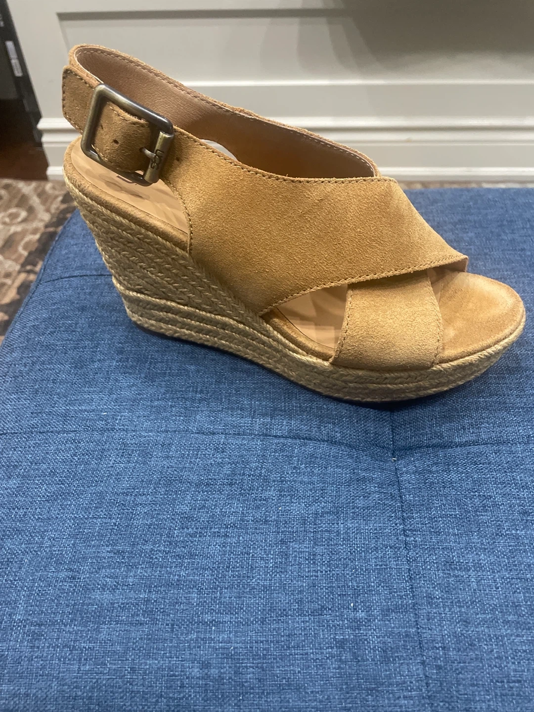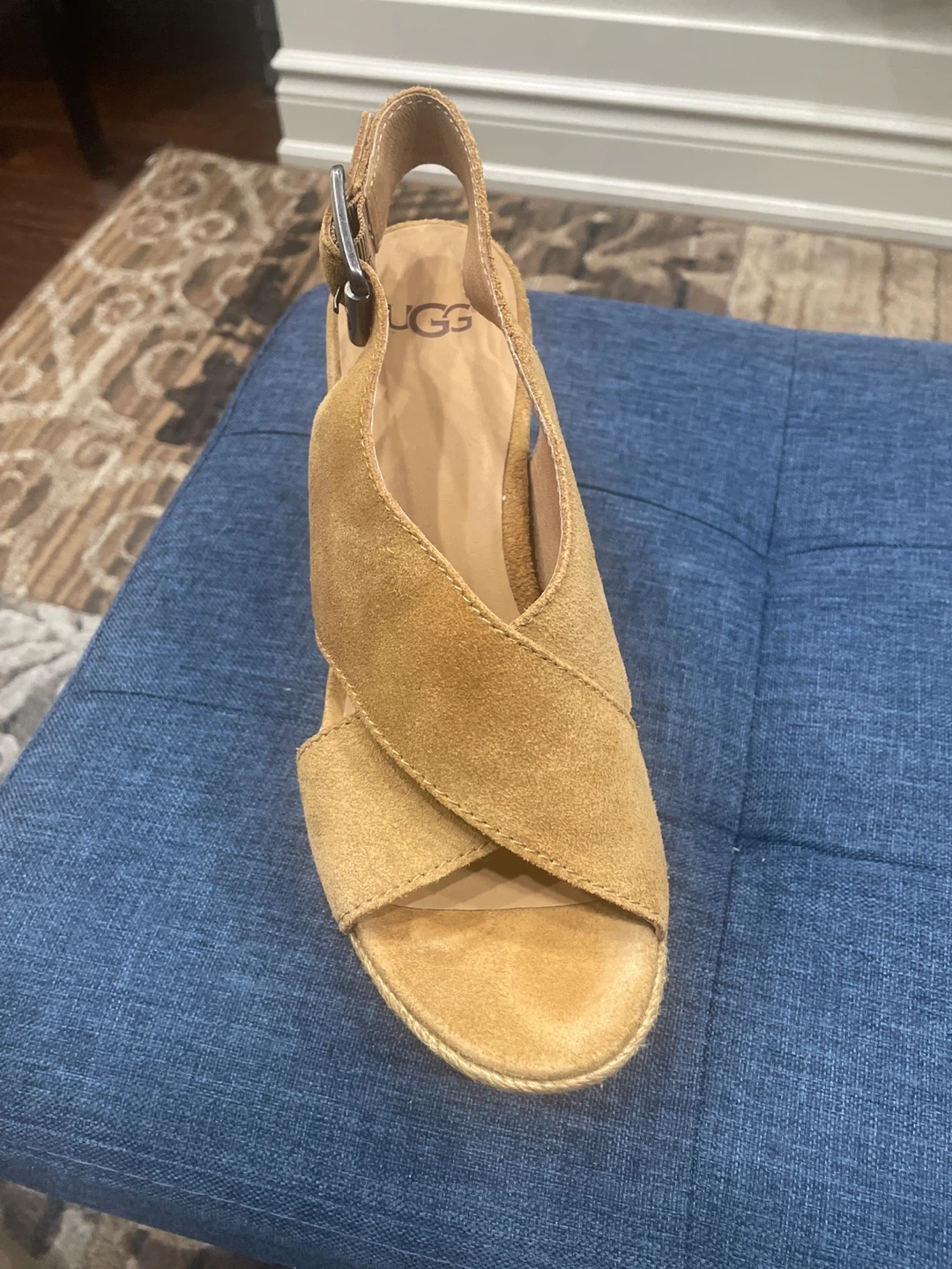 Selling a pair of UGG wedge sandals in a lovely tan suede. They are a size 7 and in great condition. These would be perfect for spring or summer!