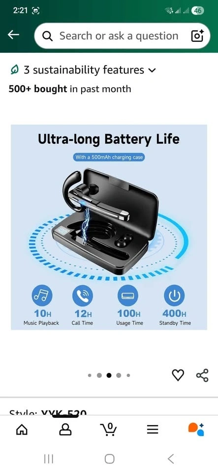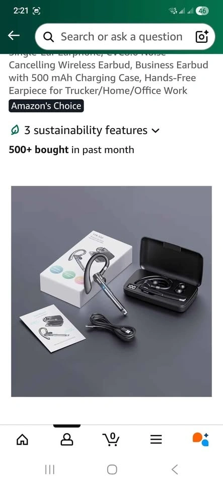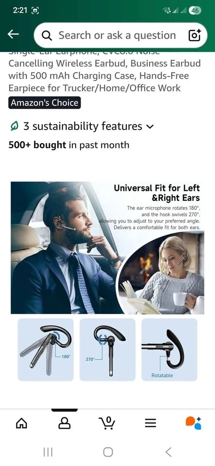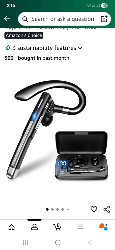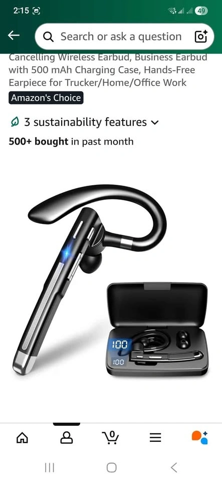 Bluetooth Headset V5.4,100 Hrs Talk Time Single-Ear Earphone, CVC8.0 Noise Cancelling Wireless Earbud, Business Earbud with 500 mAh Charging Case, Hands-Free Earpiece for Trucker/Home/Office Work