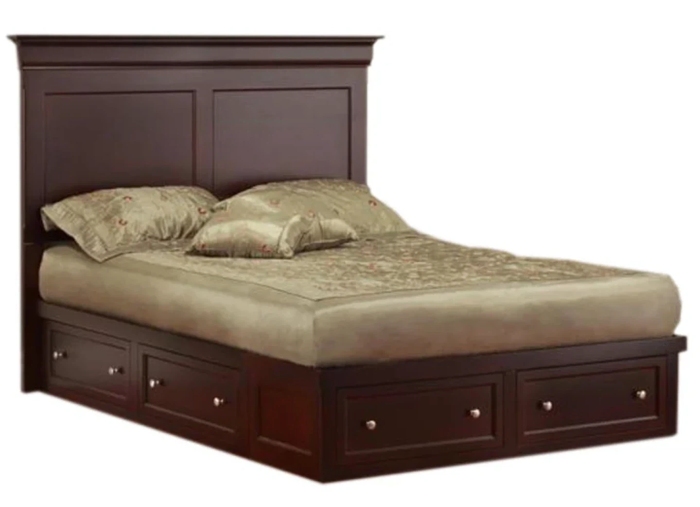 The frame has a footboard as well and 2 drawers on each side of bed. (Not in photo)