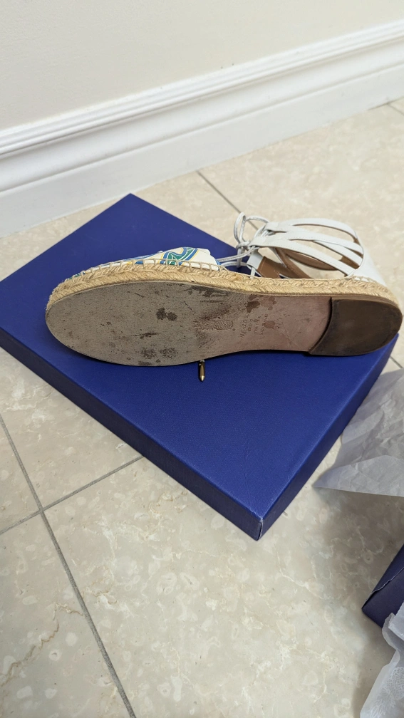 Aquazzura Belgravia Flat Espadrille, calf printed, white/blue, size 37.5. Comes with original dust bag and box. Only available for pick up.