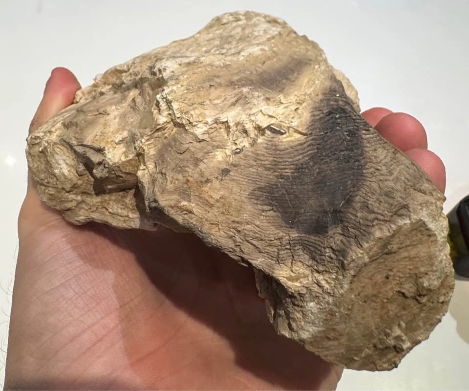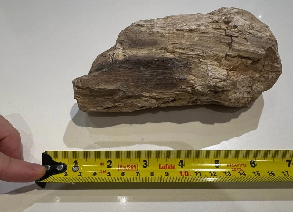 This is a solid, natural piece of fossilized wood with clearly visible grain structure and layered growth patterns. Over time, the original wood has been replaced by silica, preserving the texture and form.