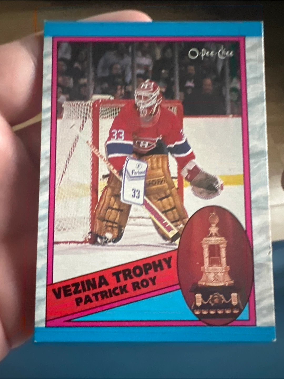 1989 O-Pee-Chee Patrick Roy Vezina Trophy Hockey Card