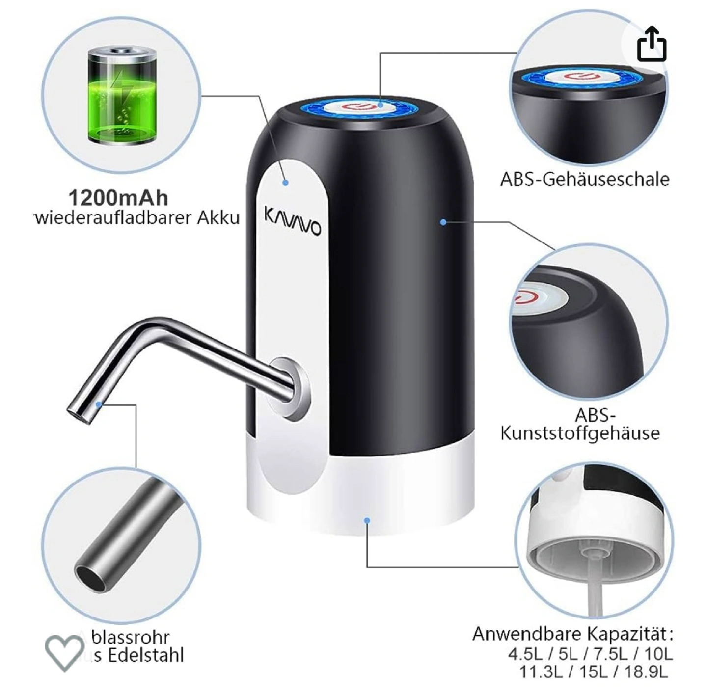 Brand new BPA free chargeable Water Bottle Pump