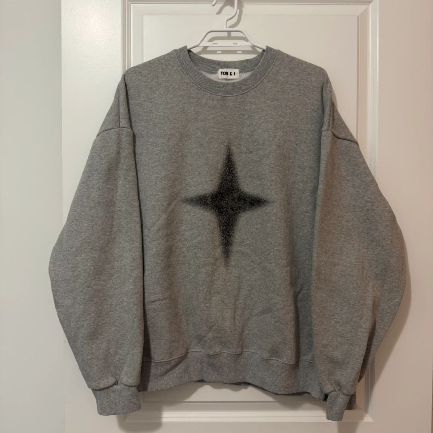 Simple and comfy oversized grey sweatshirt with a bold star graphic on the front.