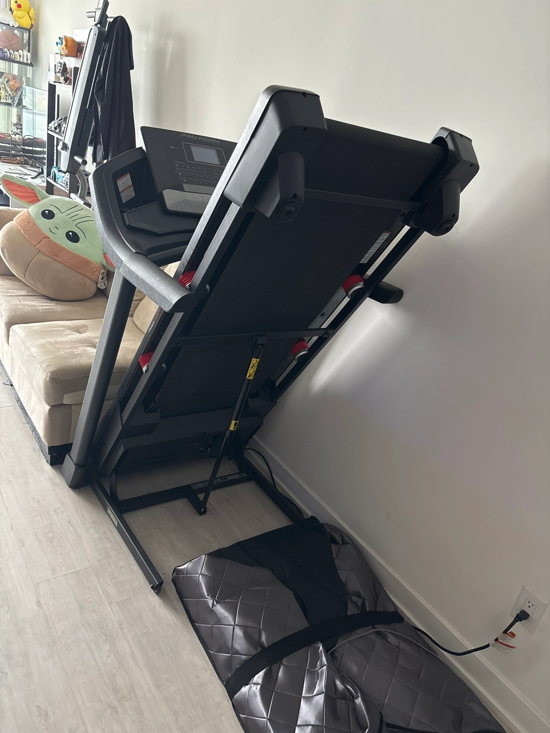 This is a ProForm treadmill that folds up for easy storage. It comes with a built-in touchscreen and fan. It is in great shape and in excellent working condition. It would be a great addition to your home gym. 300ib capacity, 10mph speed, foldable. Pickup only