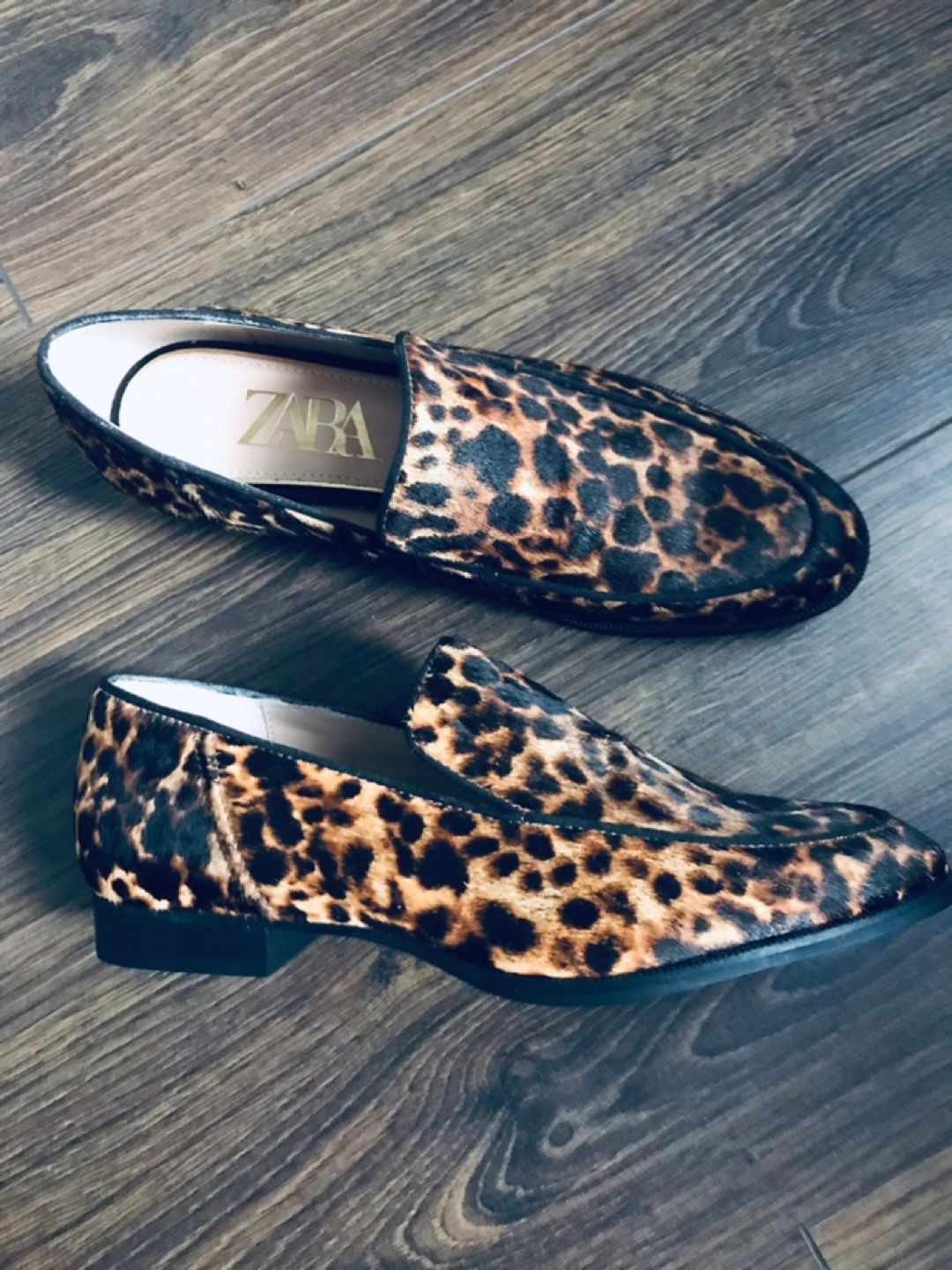 Zara Women’s flat loafers, genuine calf hair, cheetah print, size 6, never worn