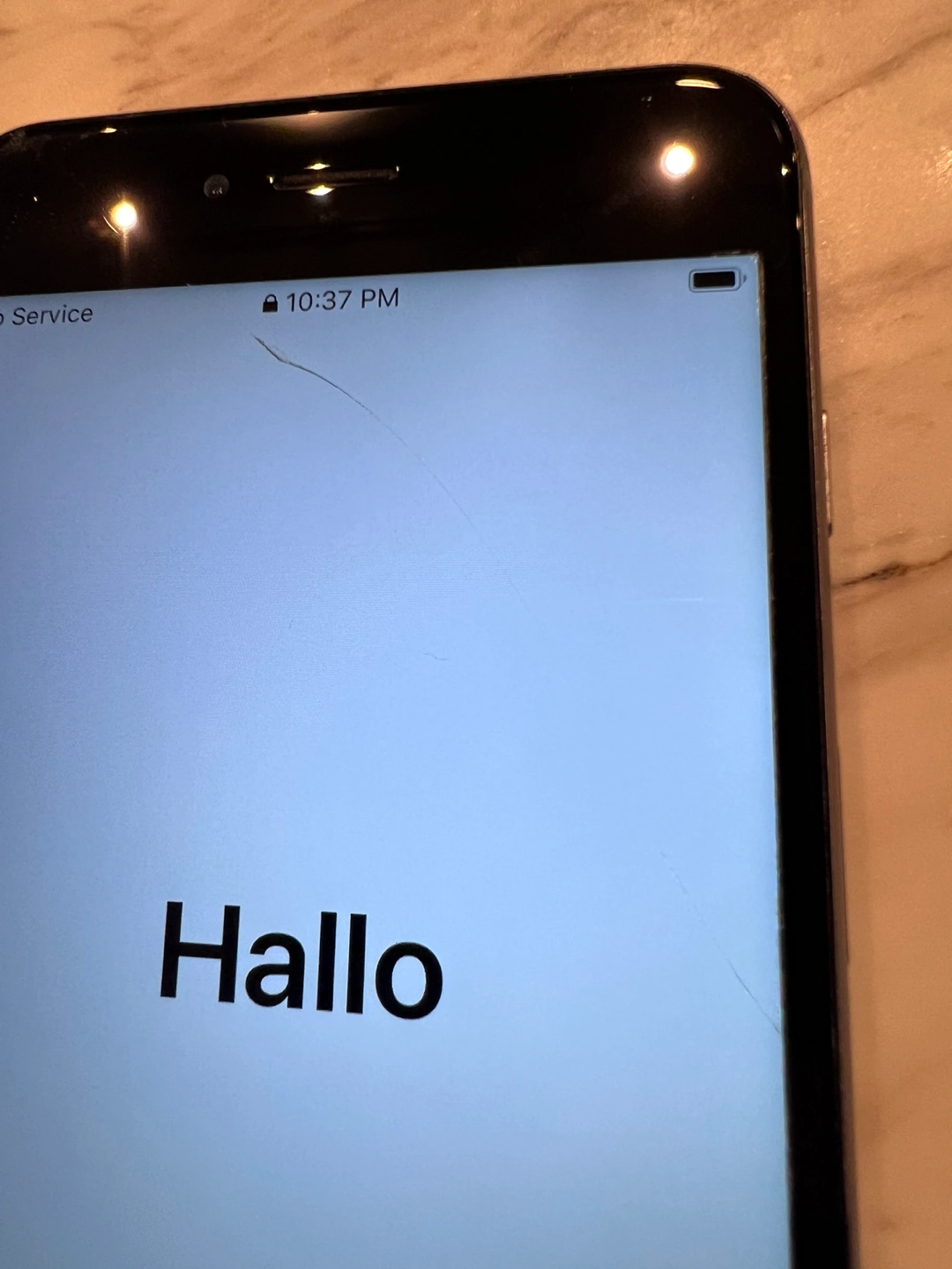 Cosmetic scratches and slight crack on screen. Comes with case.