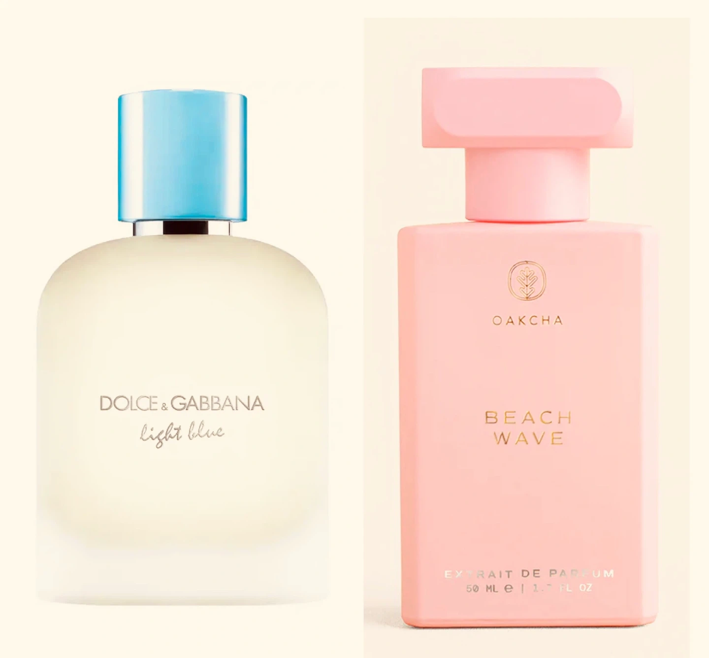 This is a bottle of Oakcha Beach Wave Dupe of Dolce & Gabbana Light Blue Eau de Toilette. It's a fresh and floral fragrance for women. 50 ml size.