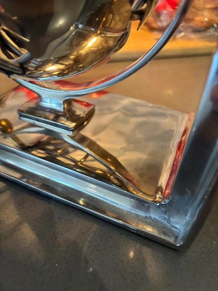 Condition: Good vintage condition with minor surface wear, light smudges, and age-appropriate patina on the polished metal. No major dents, rust, or damage. Cleans up nicely with metal polish.