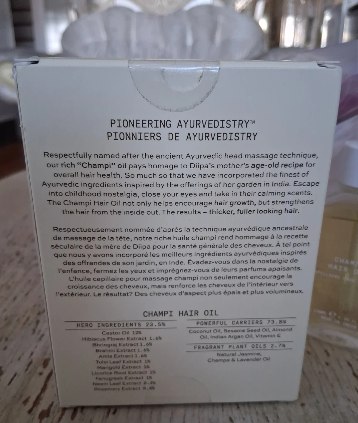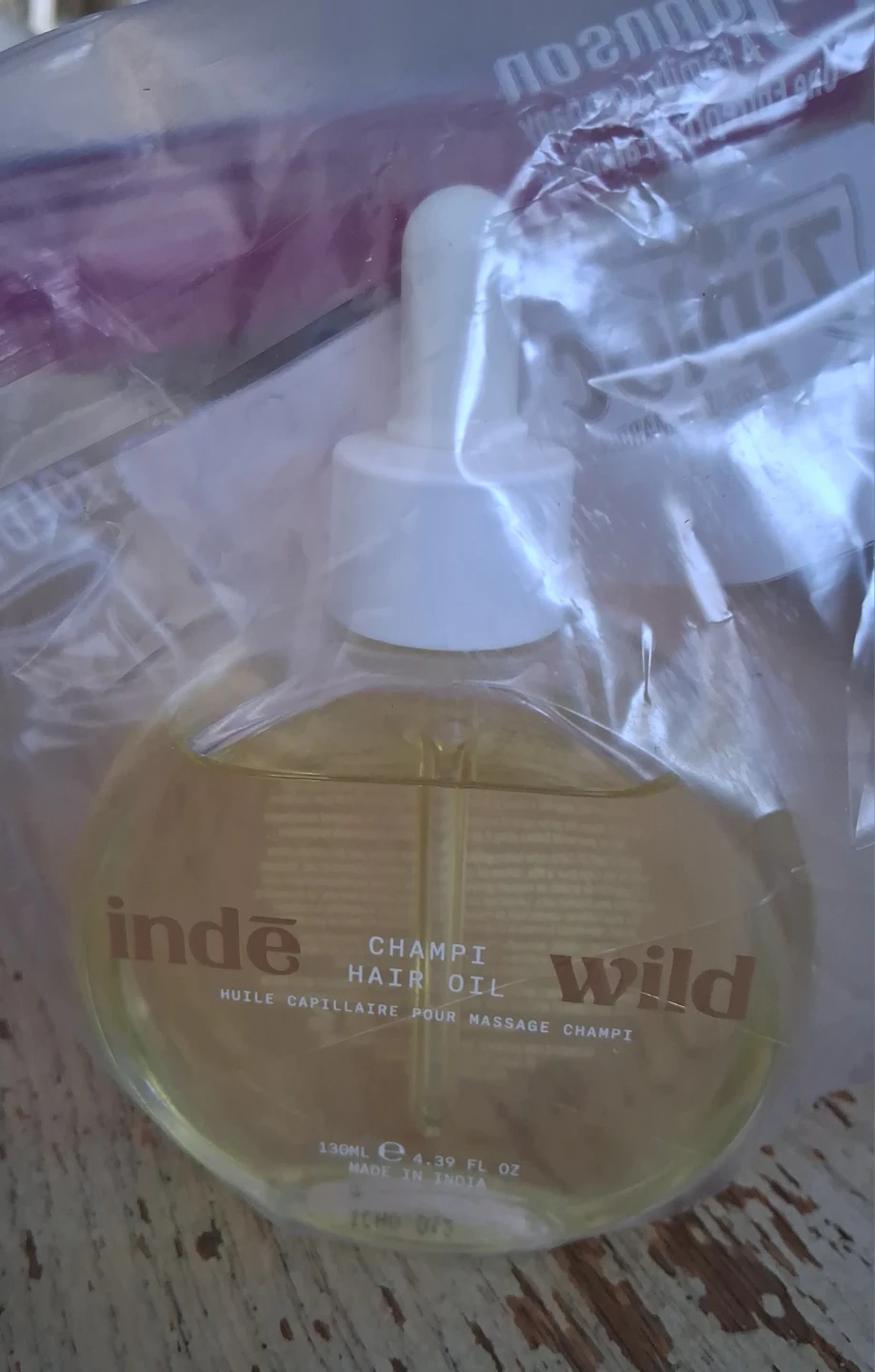This Indie Wild Champi Hair Oil is made in India. It's 130ml / 4.39 fl oz and comes with a dropper. The oil is formulated with hero ingredients like Castor Oil and Bhringraj Extract.