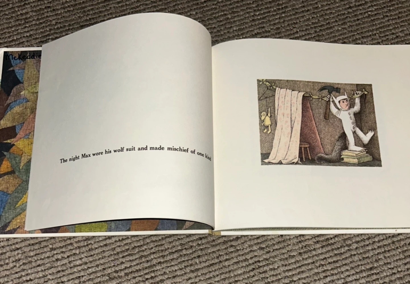 A classic children's book, 'Where the Wild Things Are' is written and illustrated by Maurice Sendak. This edition is published by Harper Collins Publishers. It tells the story of Max and his wild adventure. Sadly, the cover got a bit muddy on a trip to grandma’s and resists being cleaned. But the inside is in excellent condition. The sturdy, library-quality pages have aged beautifully and the artwork is as beautiful as ever.