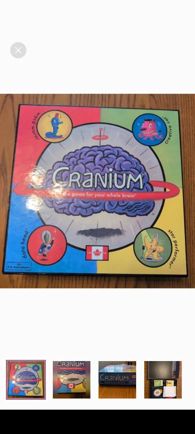 This is the Cranium board game, perfect for a family game night. It's designed for players aged 12 and up, supporting 4 or more players. It's the game for your whole brain!