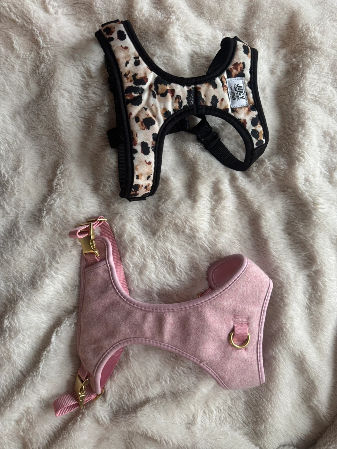 Selling a lot of new dog harnesses! There's a variety of styles, colours, and sizes available. Perfect if you're looking to try out different fits for your furry friend or need some backups. Take a look at the pictures to see the selection!