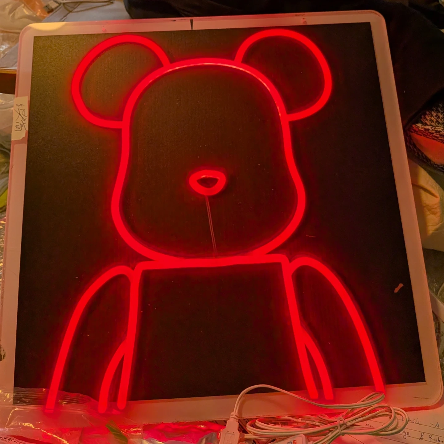 Selling a cool Bearbrick neon sign! It's in great shape and gives off a vibrant red glow. Perfect for adding a fun touch to any room