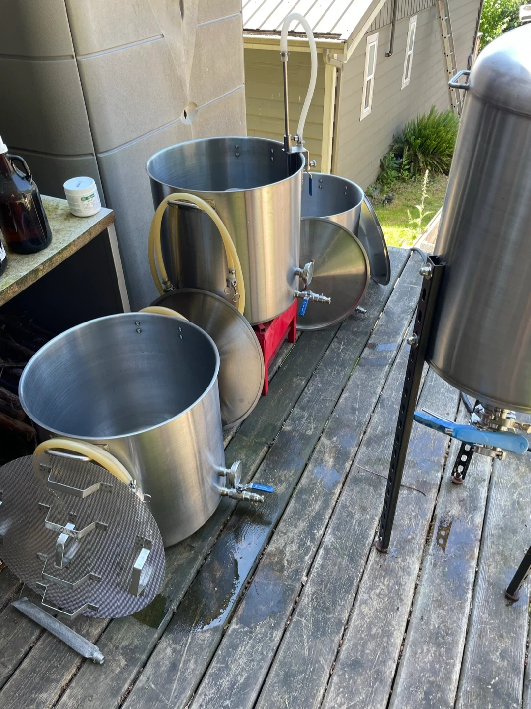 - Mash tun with false bottom for efficient lautering