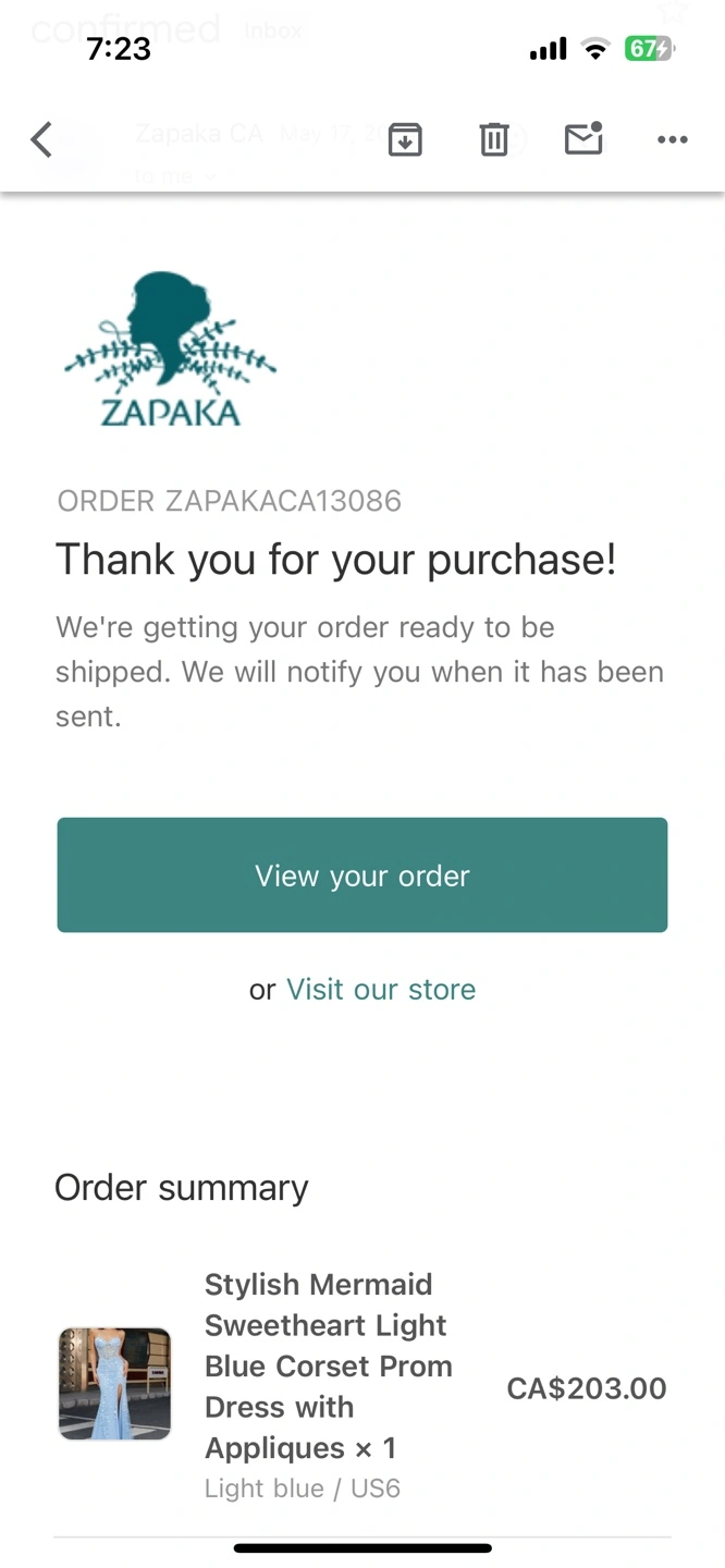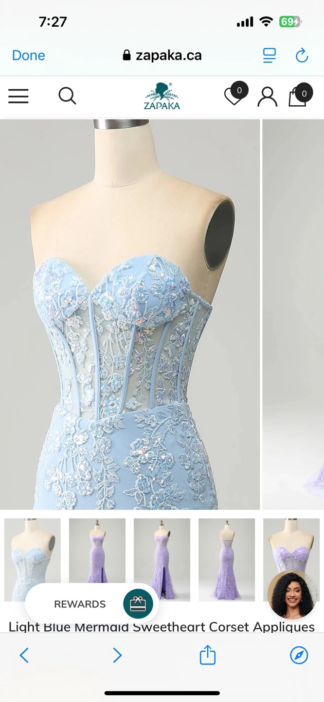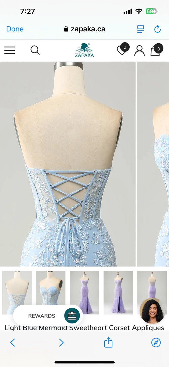 Stunning light blue mermaid prom dress. Bought for 203$. Features a sweetheart corset bodice with delicate appliques. Lace-up back. High slit. Size US6. Good as new