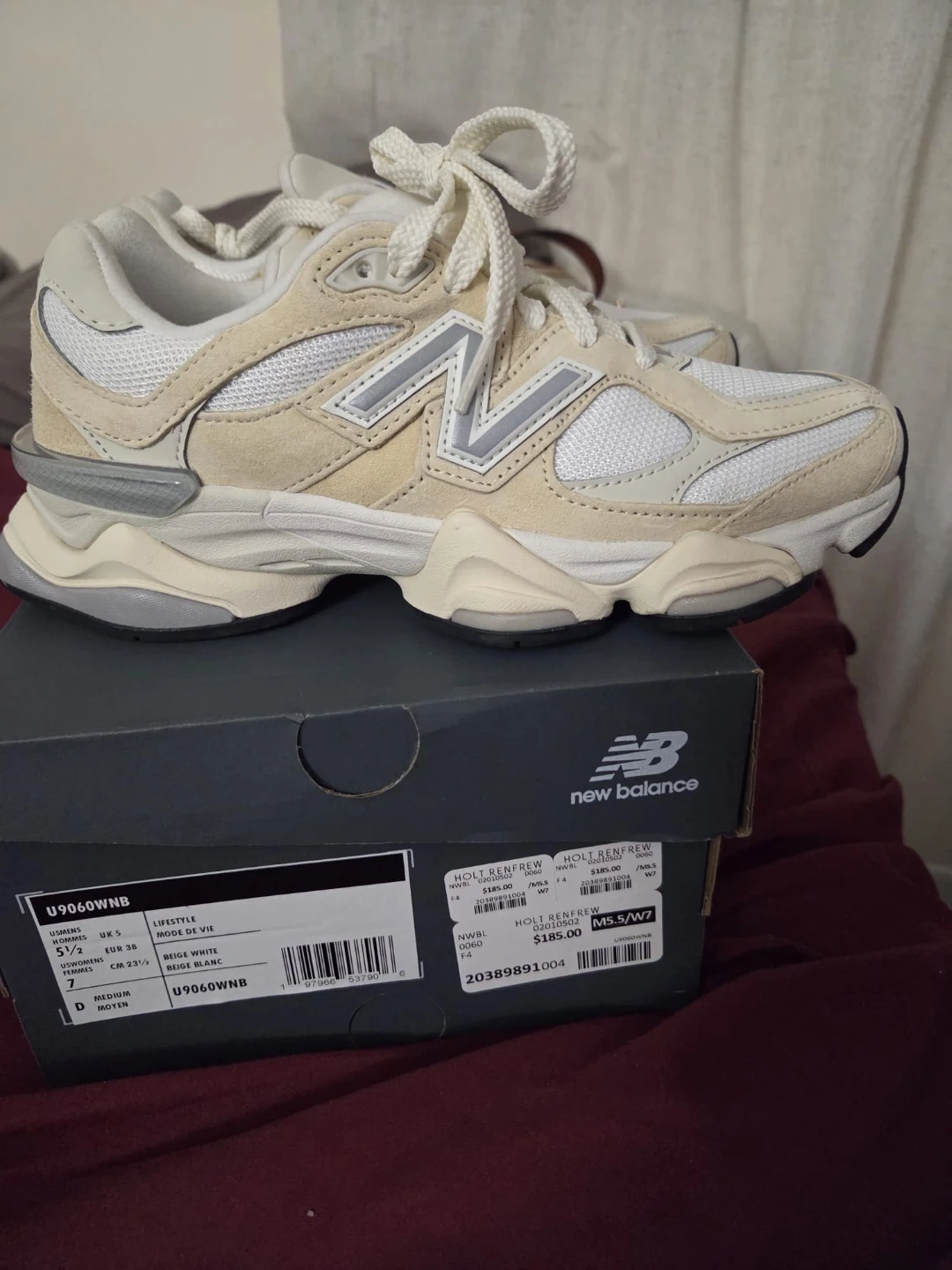 New Balance U9060WNB lifestyle sneakers in beige. These shoes are a women's size 7 US. Includes original box.