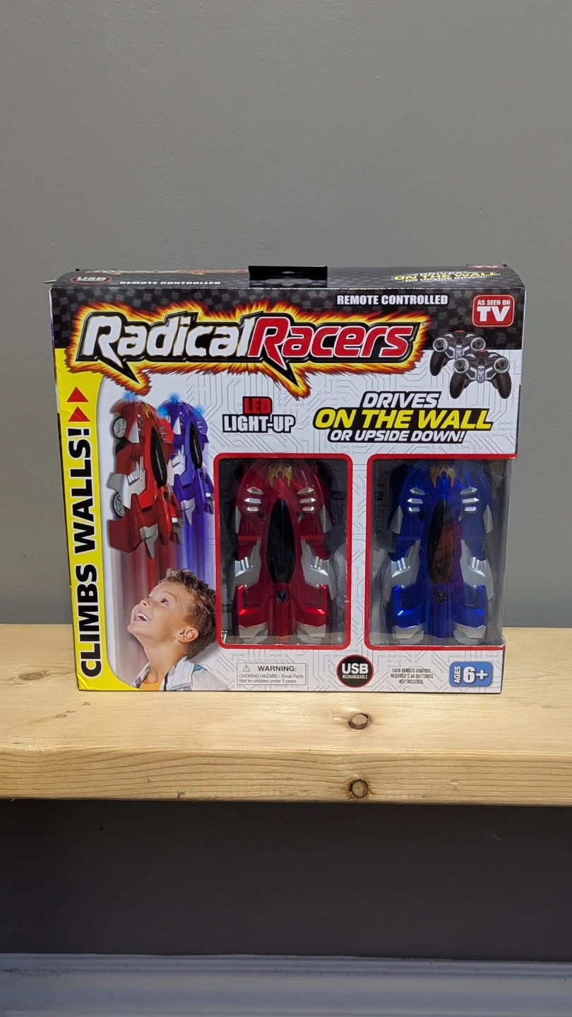 Selling a brand new Radical Racers Light-Up car that drives on the wall or upside down! It's still in the box and has never been used. Recommended for ages 6+