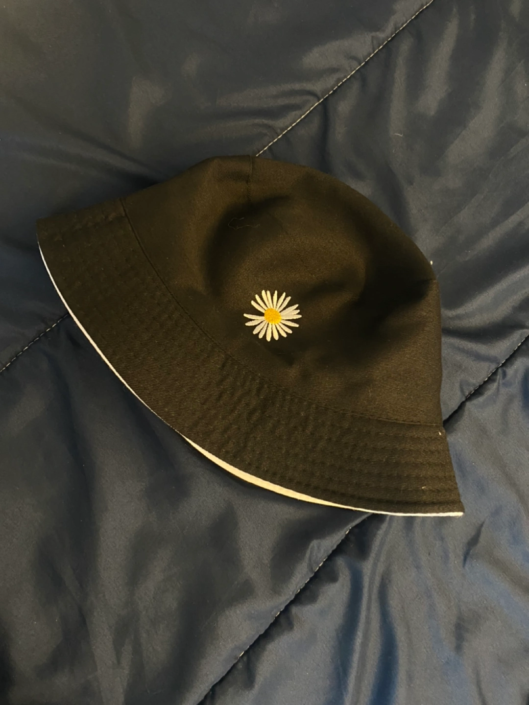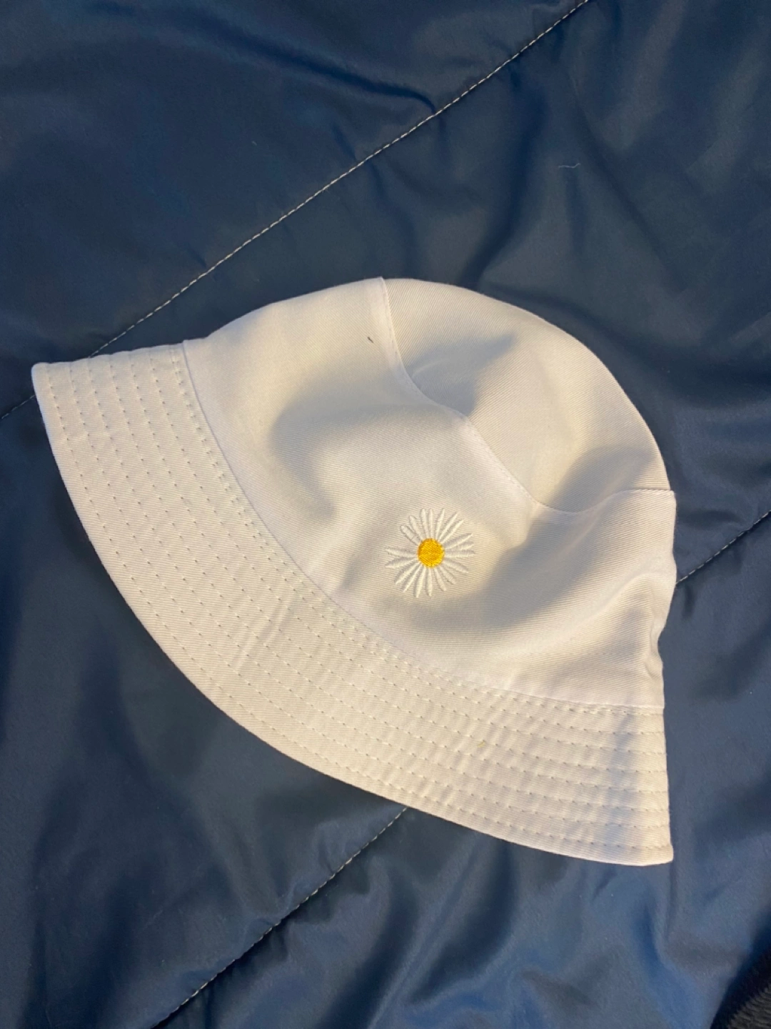 It’s a bucket hat with a daisy print. Can be used on both sides. I got it as a gift but it’s a little big for me