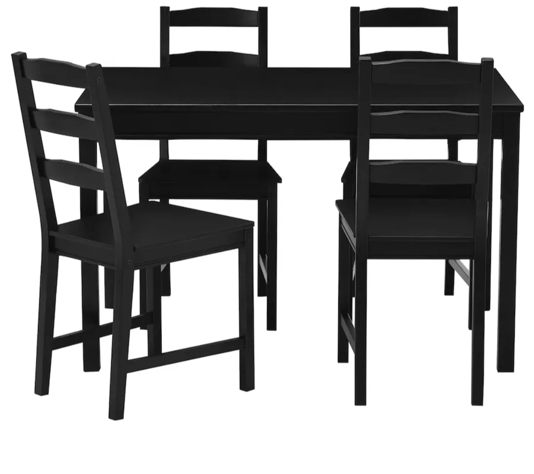 A simple, sturdy set that’s perfect for your breakfast nook or smaller dining area. The solid black-brown pine holds up well over time and will endure all the family meals and activities around the table.