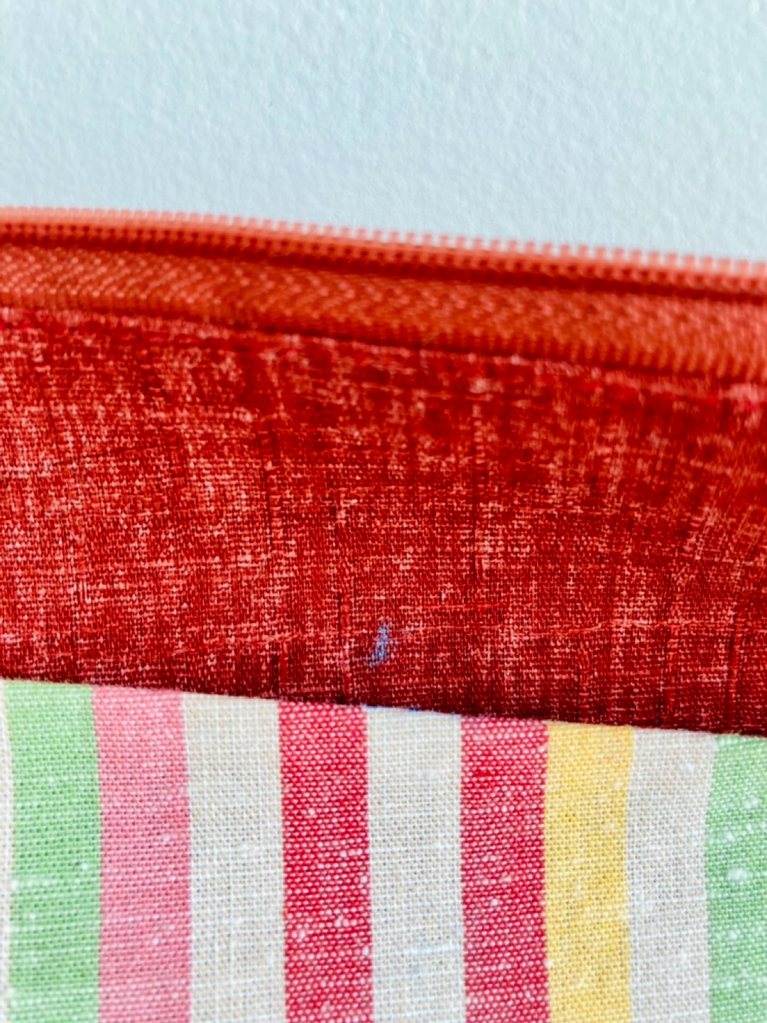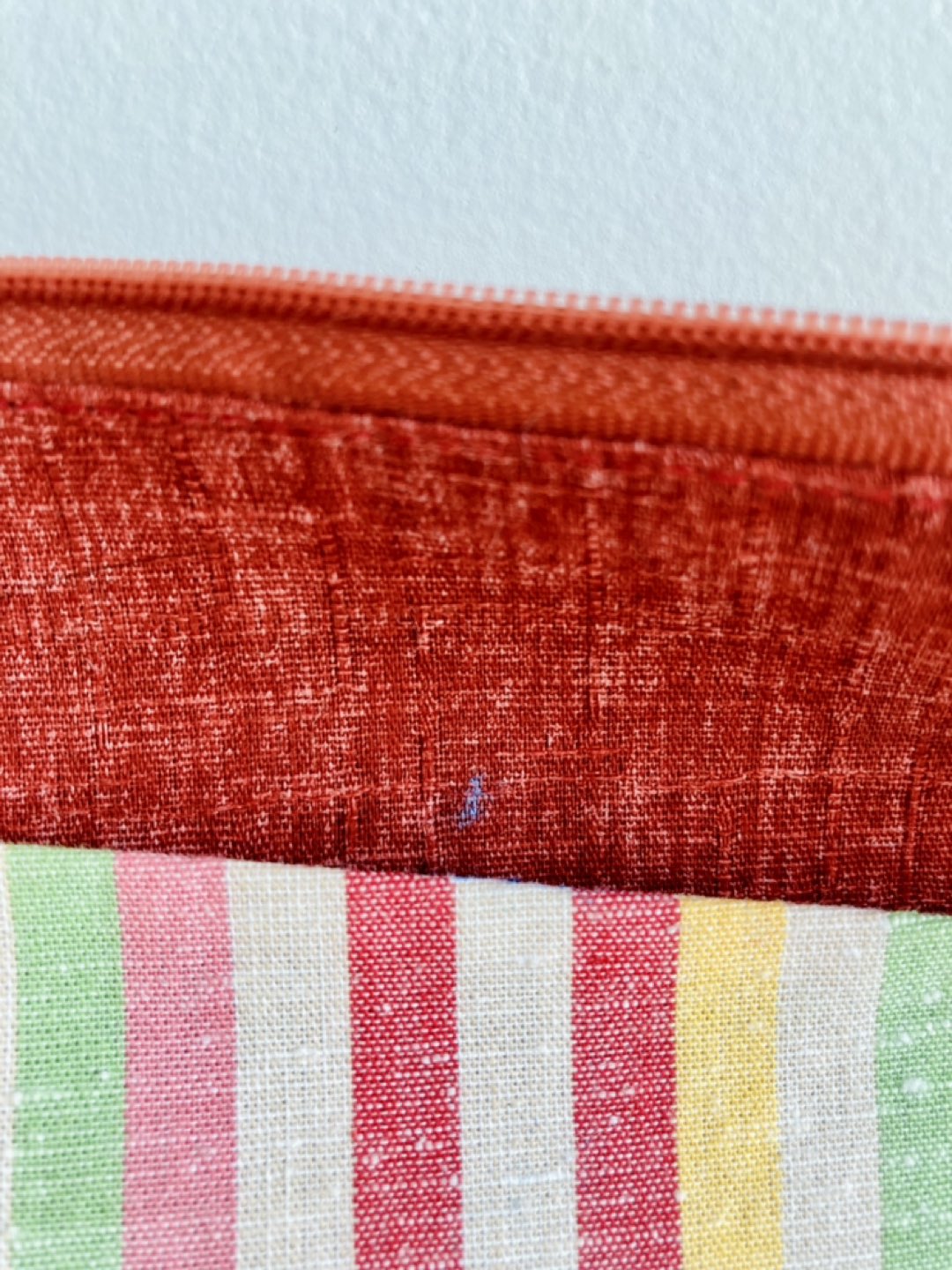 A small blue mark (see photo) but in otherwise excellent condition. Perfect to tuck into your purse.