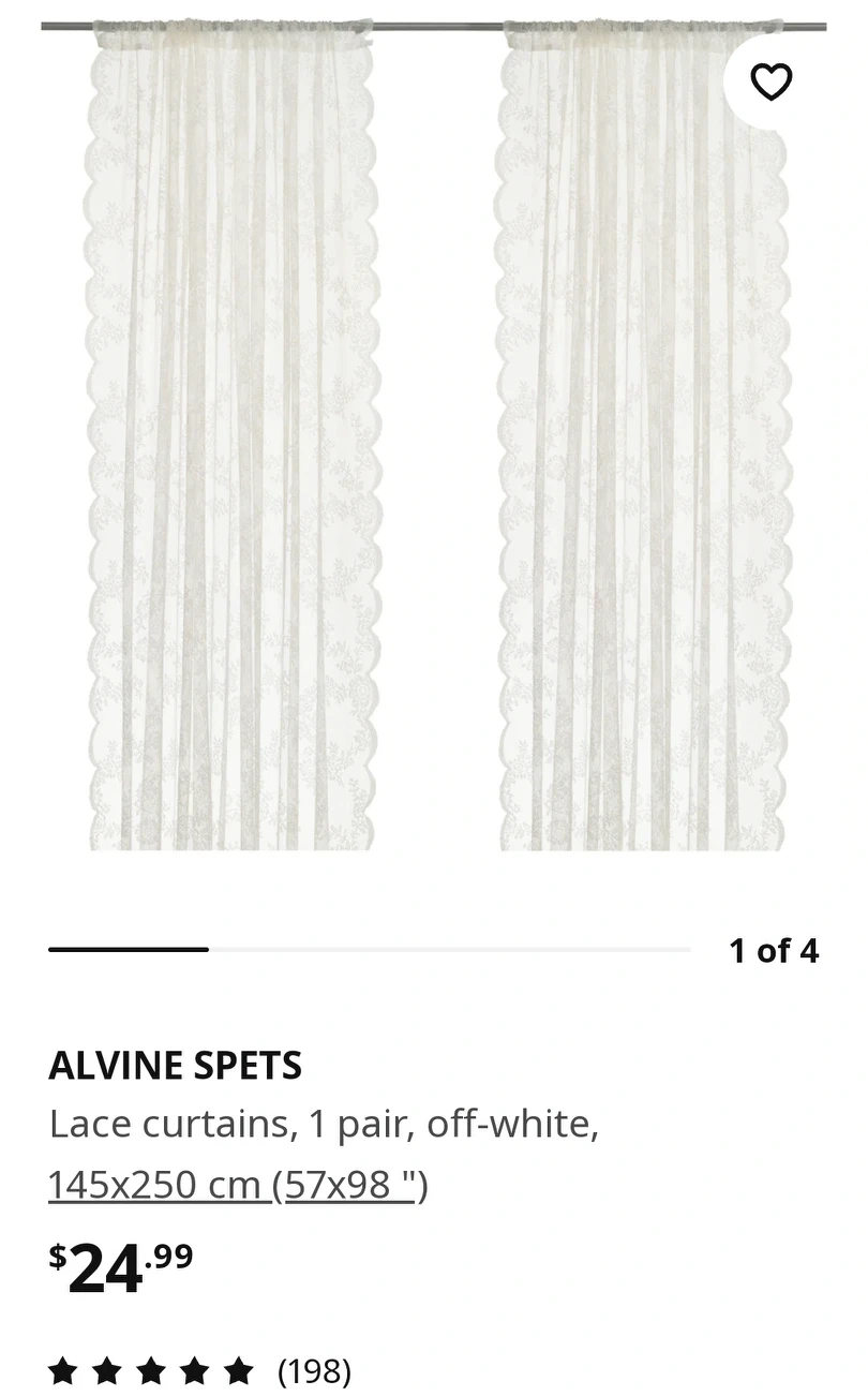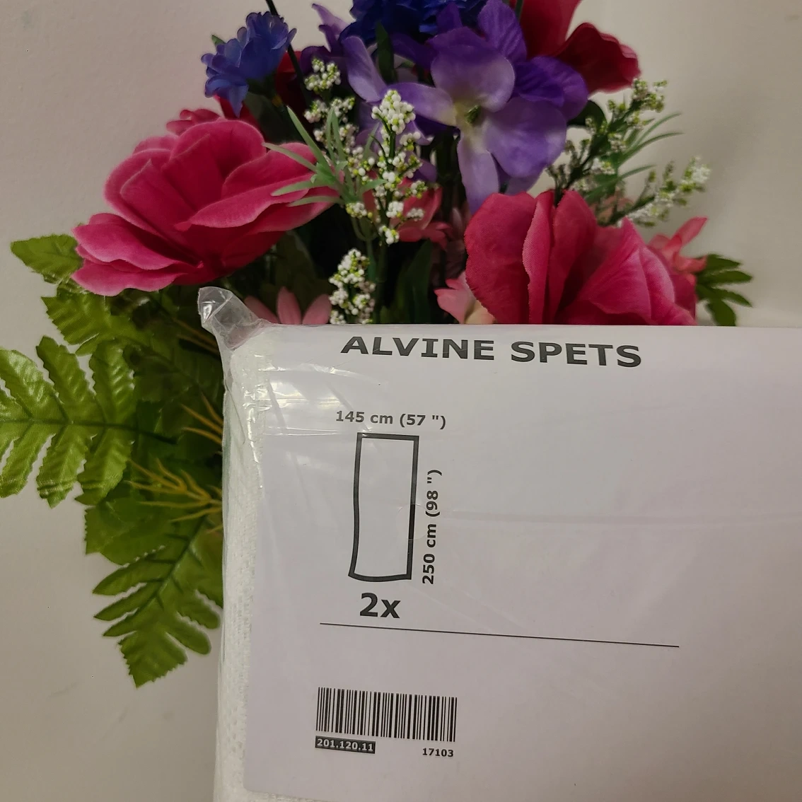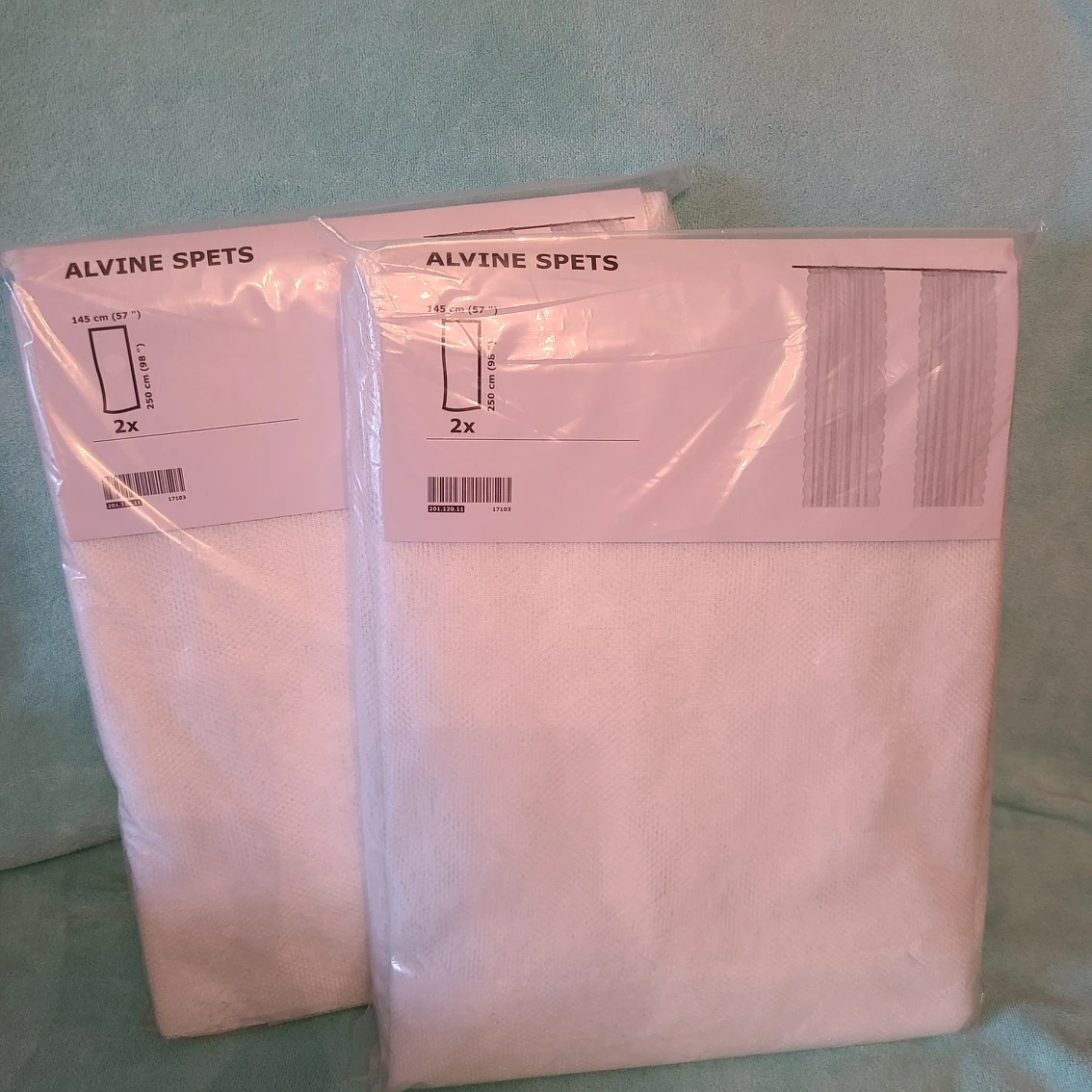 2 sets of white lace curtains, brand new in package. check ikea website for more info. (alpine spets)