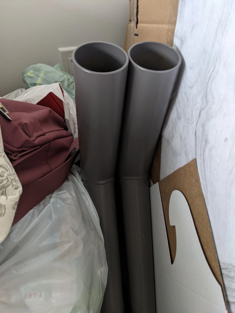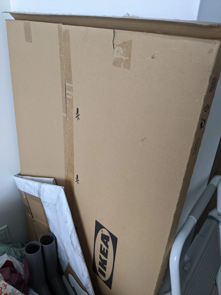 New, unused. I never built it. It doesn't fit in my space. Really nice desk, cool aesthetic.