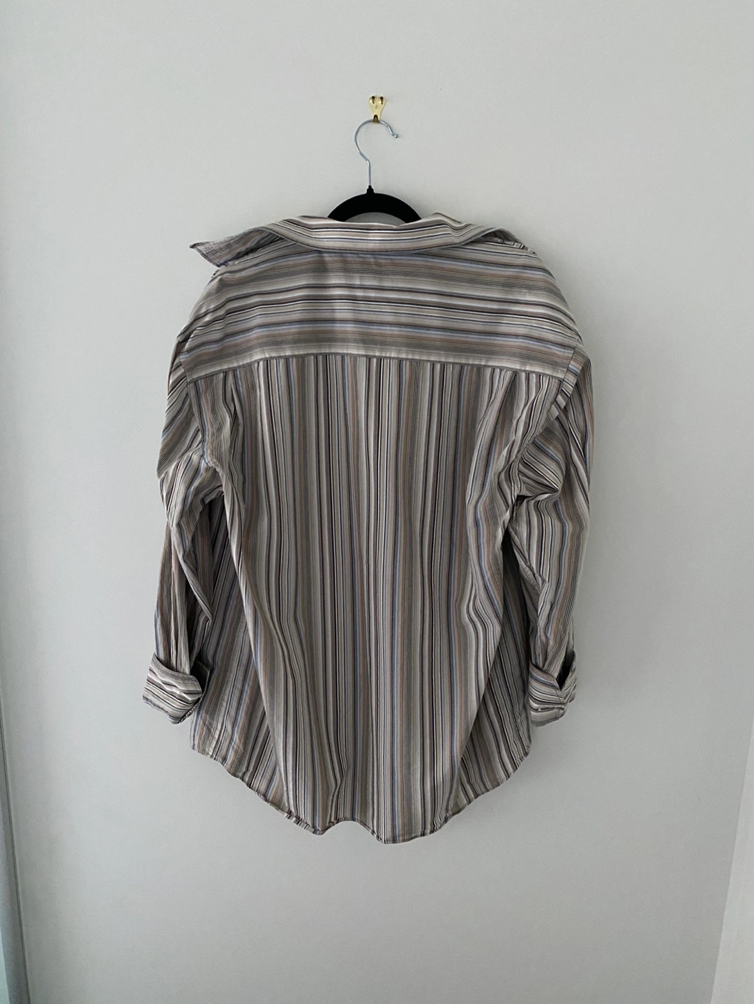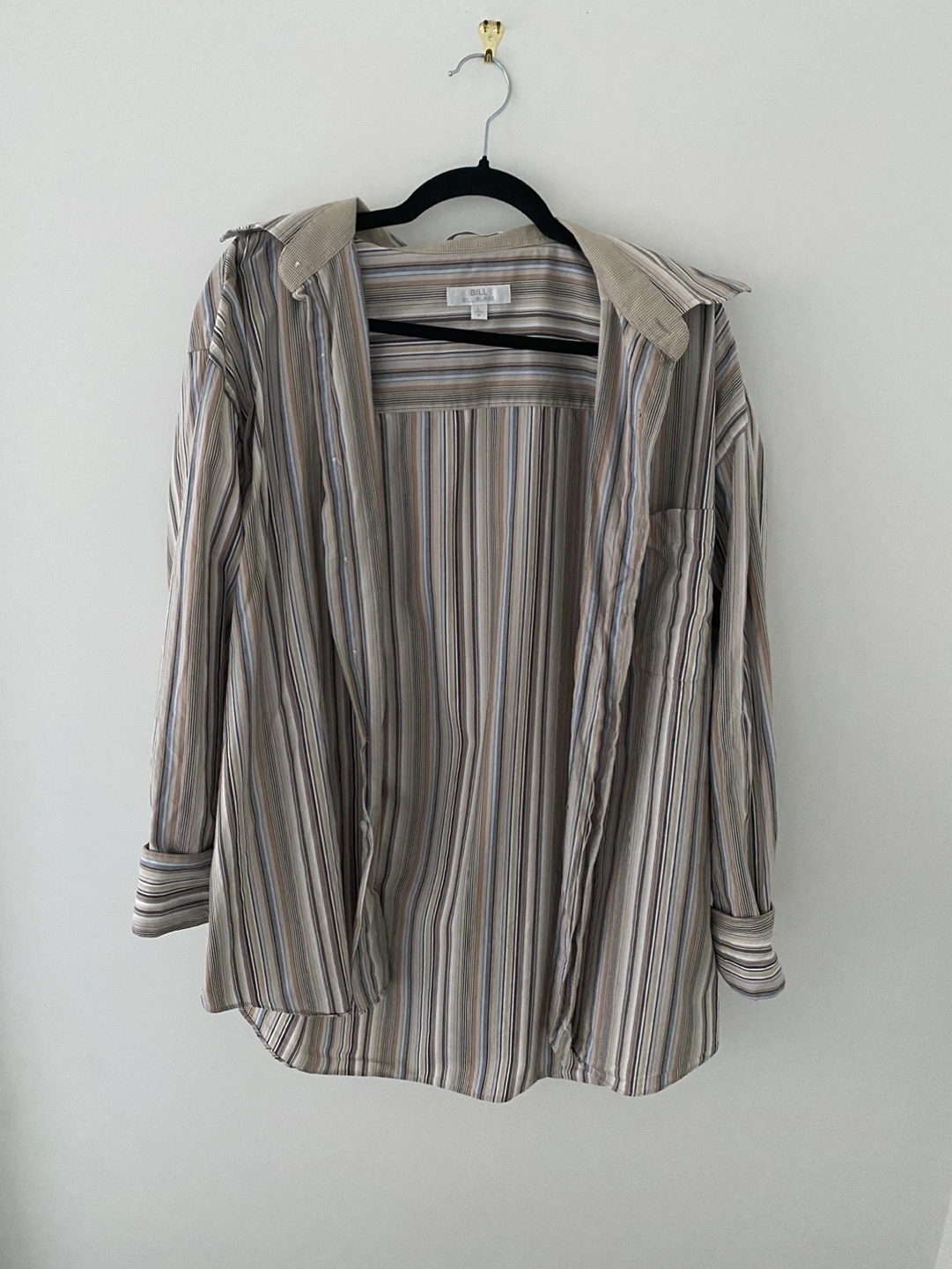 Striped men’s button up - size large for an oversized fit. Perfect with a white crop top and jeans for a Matilda djerf inspired look without the djerf avenue prices !