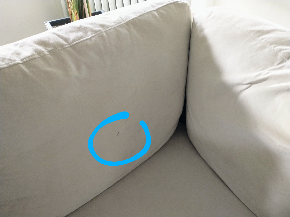 Small tear on one of the cushions (see photo).